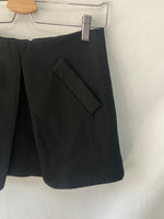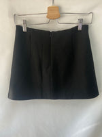 falda corta elástica con tejido gordito, superposición por delante haciendo un triángulo. Cremallera por detrás