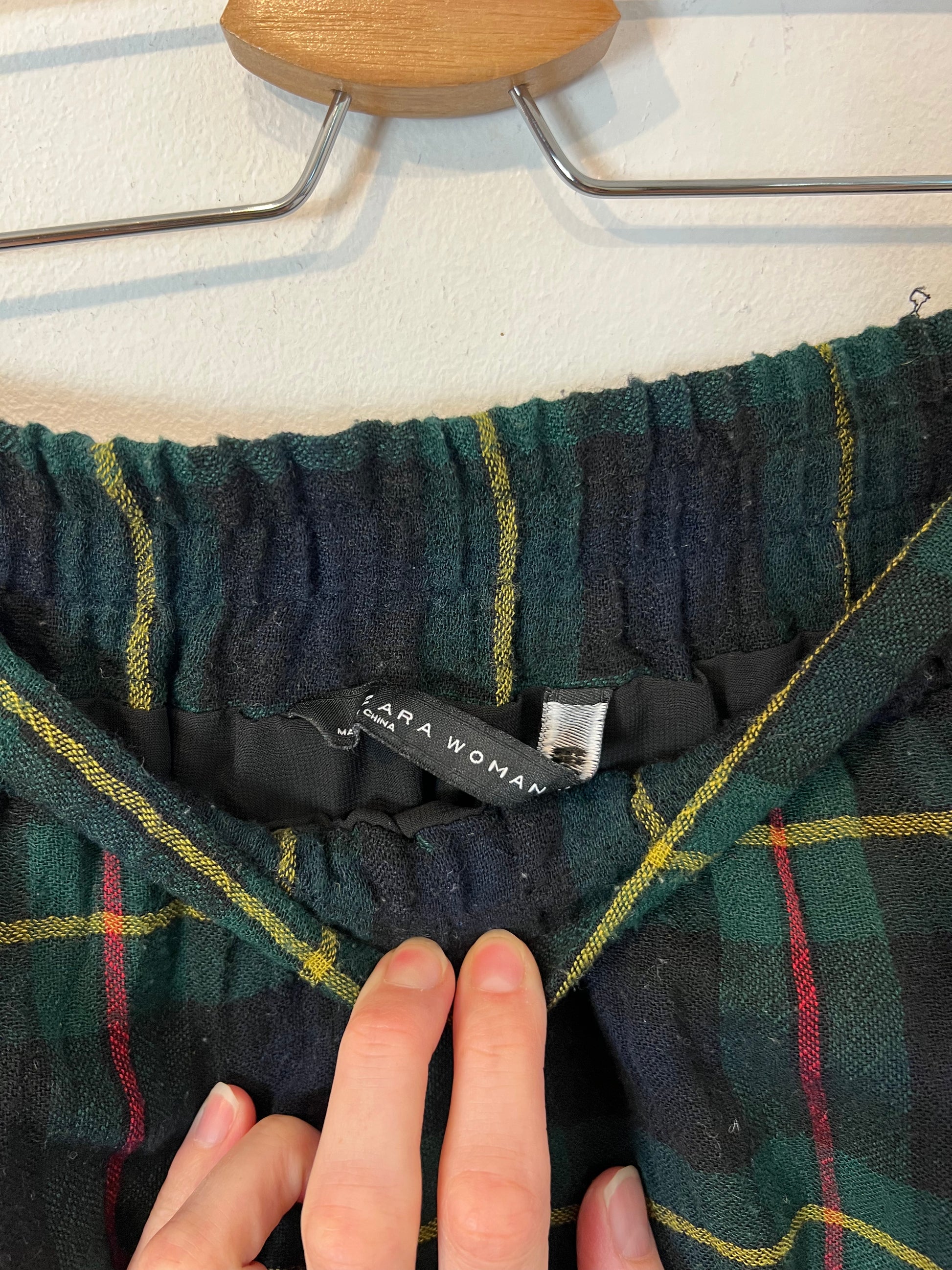ZARA. Falda verde cuadros T.xs
