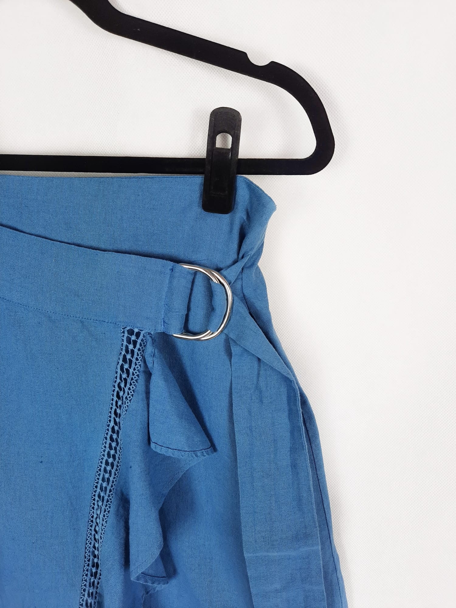 Falda midi cruzada de tejido tipo lino con cremallera en la espalda. No es elástica. Cintura 34 cm, largo 73 cm