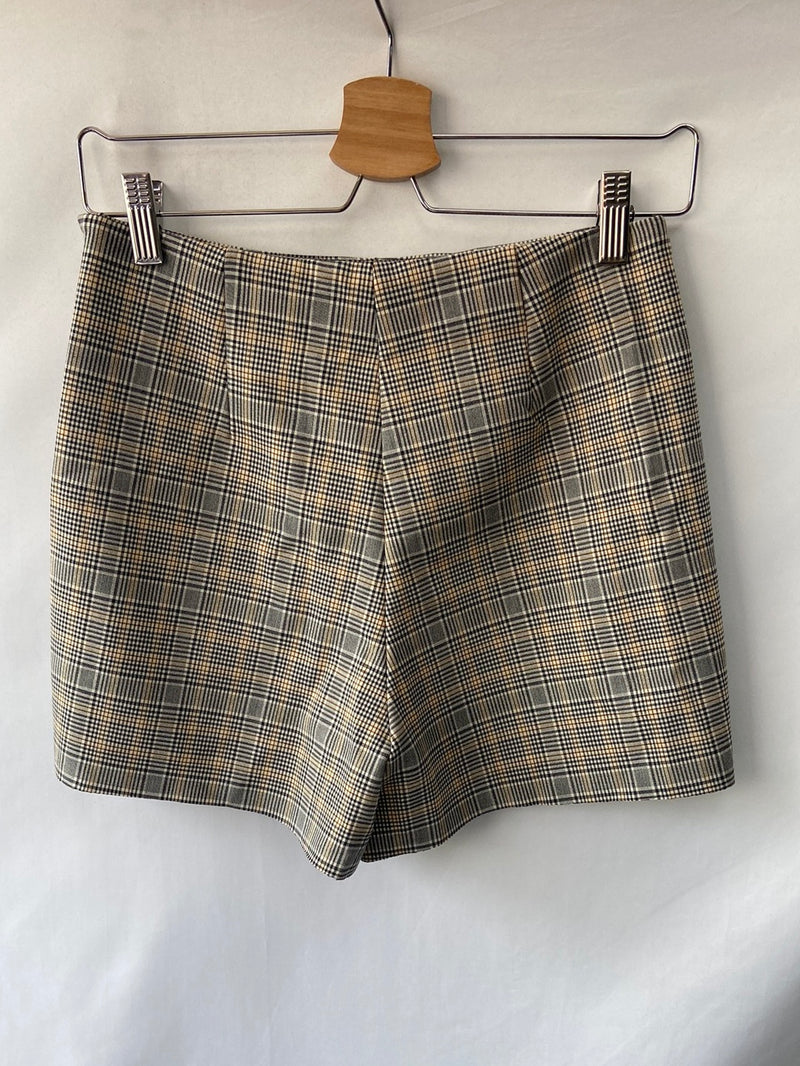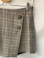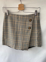 Falda pantalón de cuadros abotonada en un lateral. No es elástica. Se abrocha con cremallera lateral. Cintura 34 cm largo 38 cm