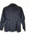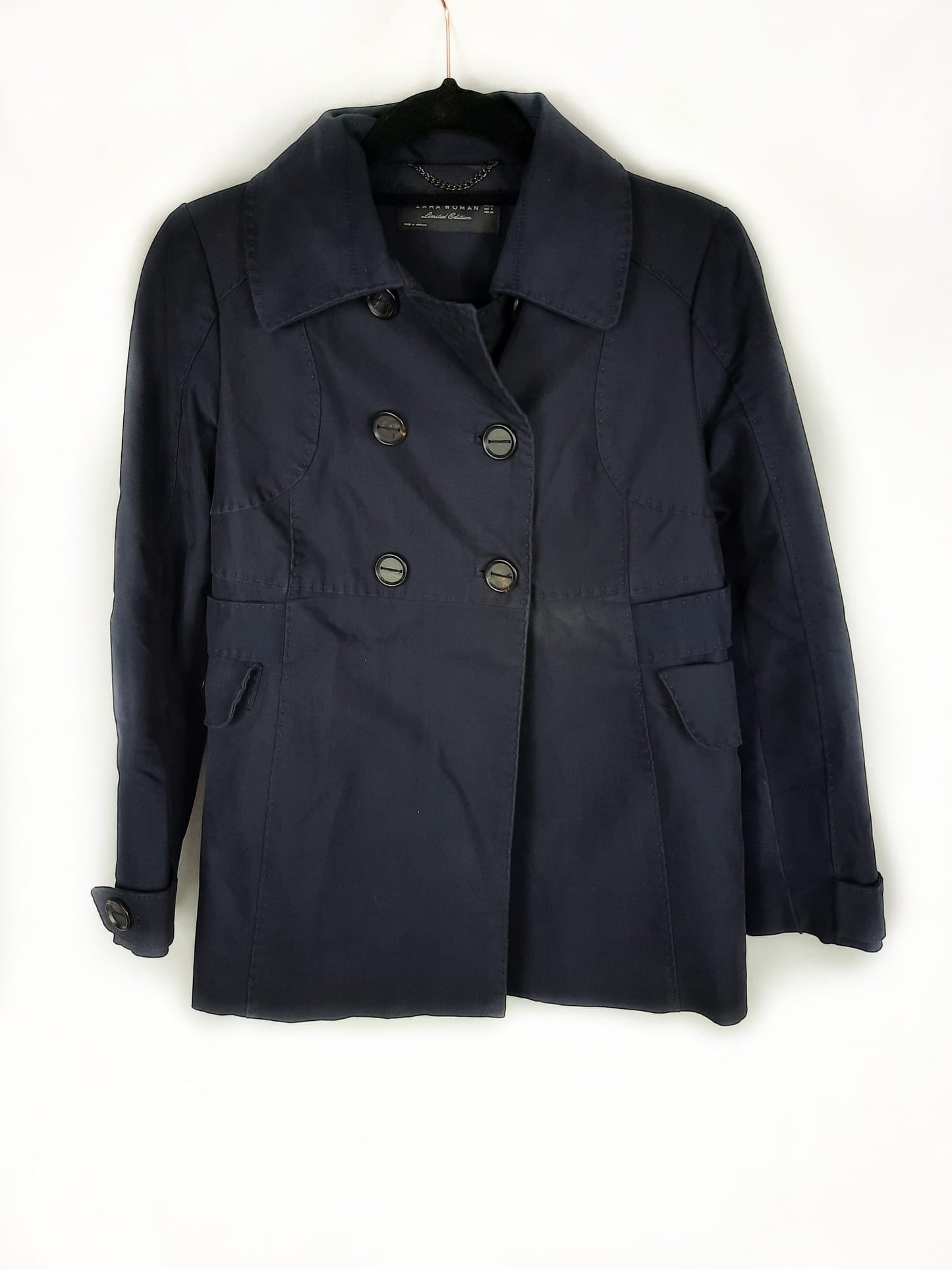 Gabardina azul cortita y cruzada. No elástico. Largo 65 cm