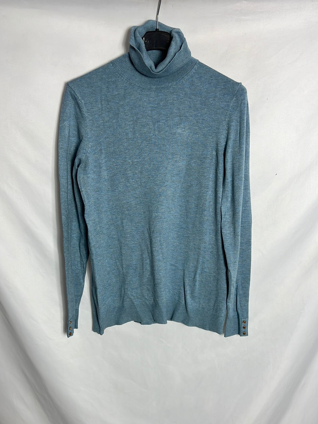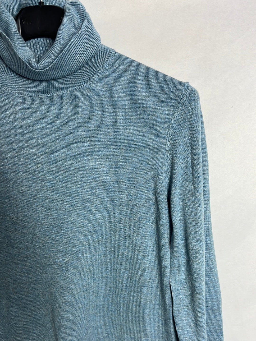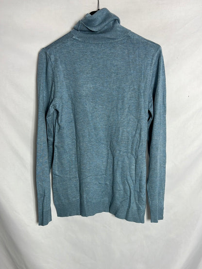 ZARA. Jersey azul jaspeado cuello alto. T L