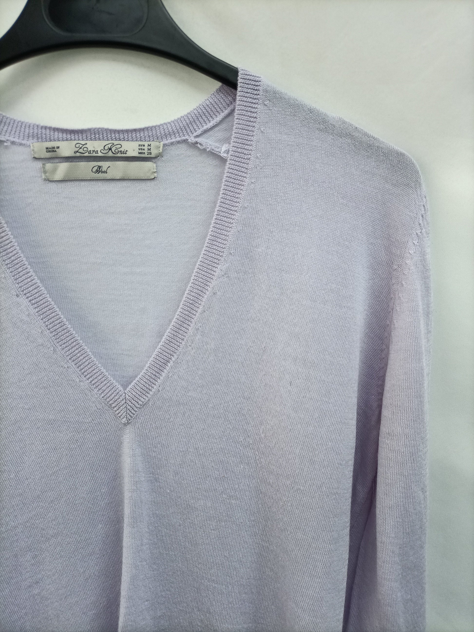 ZARA.Jersey cuello pico malva T.m