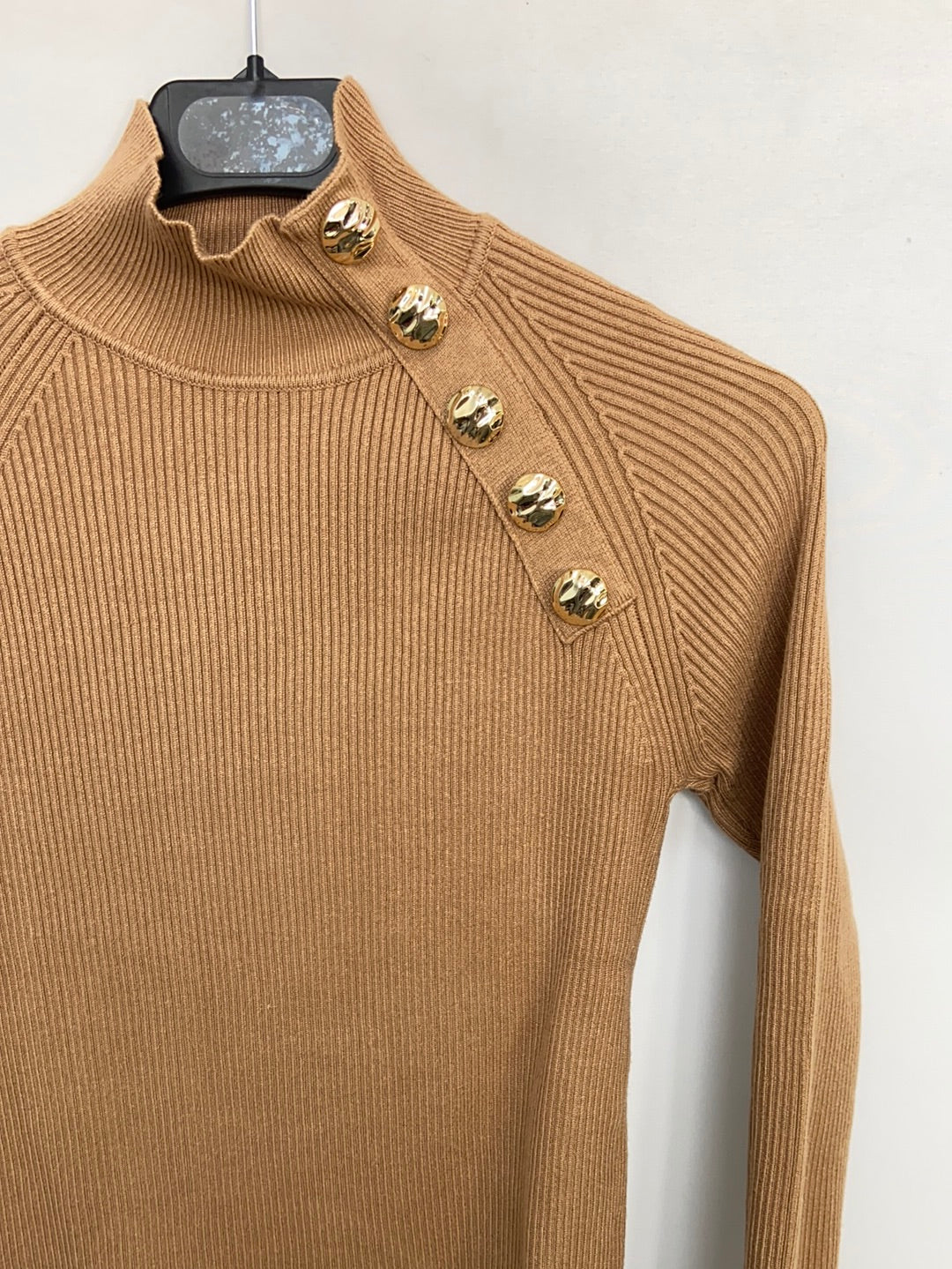 jersey/top camel de punto canalé con detalle de botones. Muy elástico