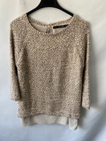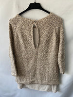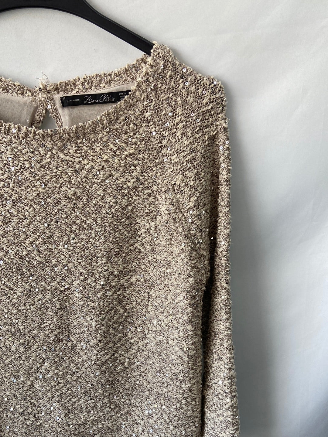 Jersey marrón con alguna lentejuelas y parte de abajo tipo blusa. Es elástico