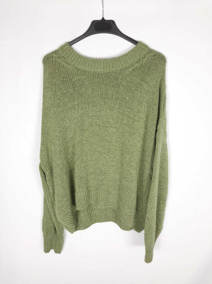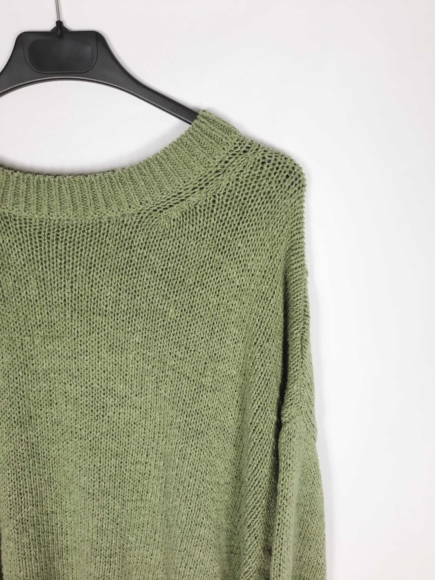 Zara. Jersey verde pistacho de punto veraniego. Fluido. Largo 63 cm