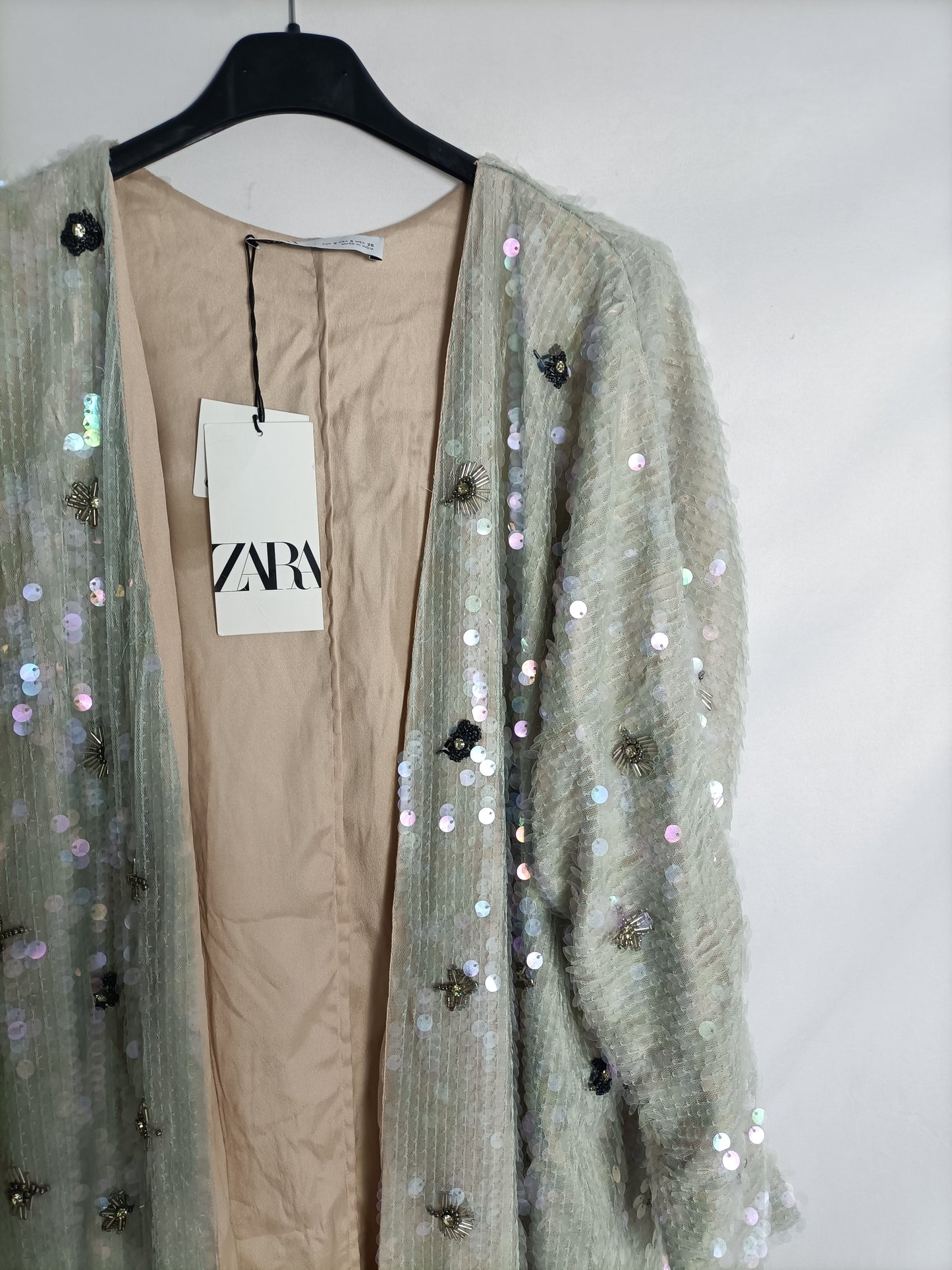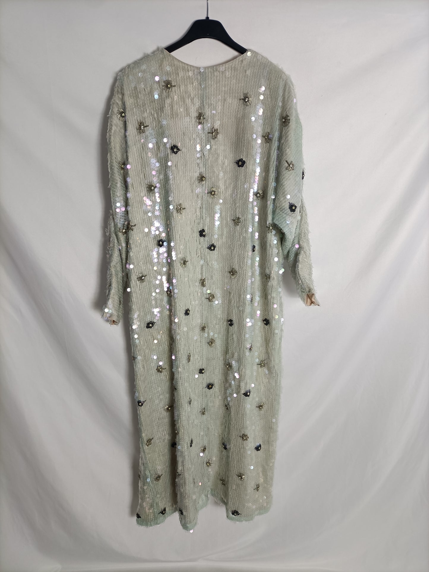 NUEVO CON ETIQUETA. Kimono de lentejuelas transparente con abalorios. Largo. ESPECTACULAR