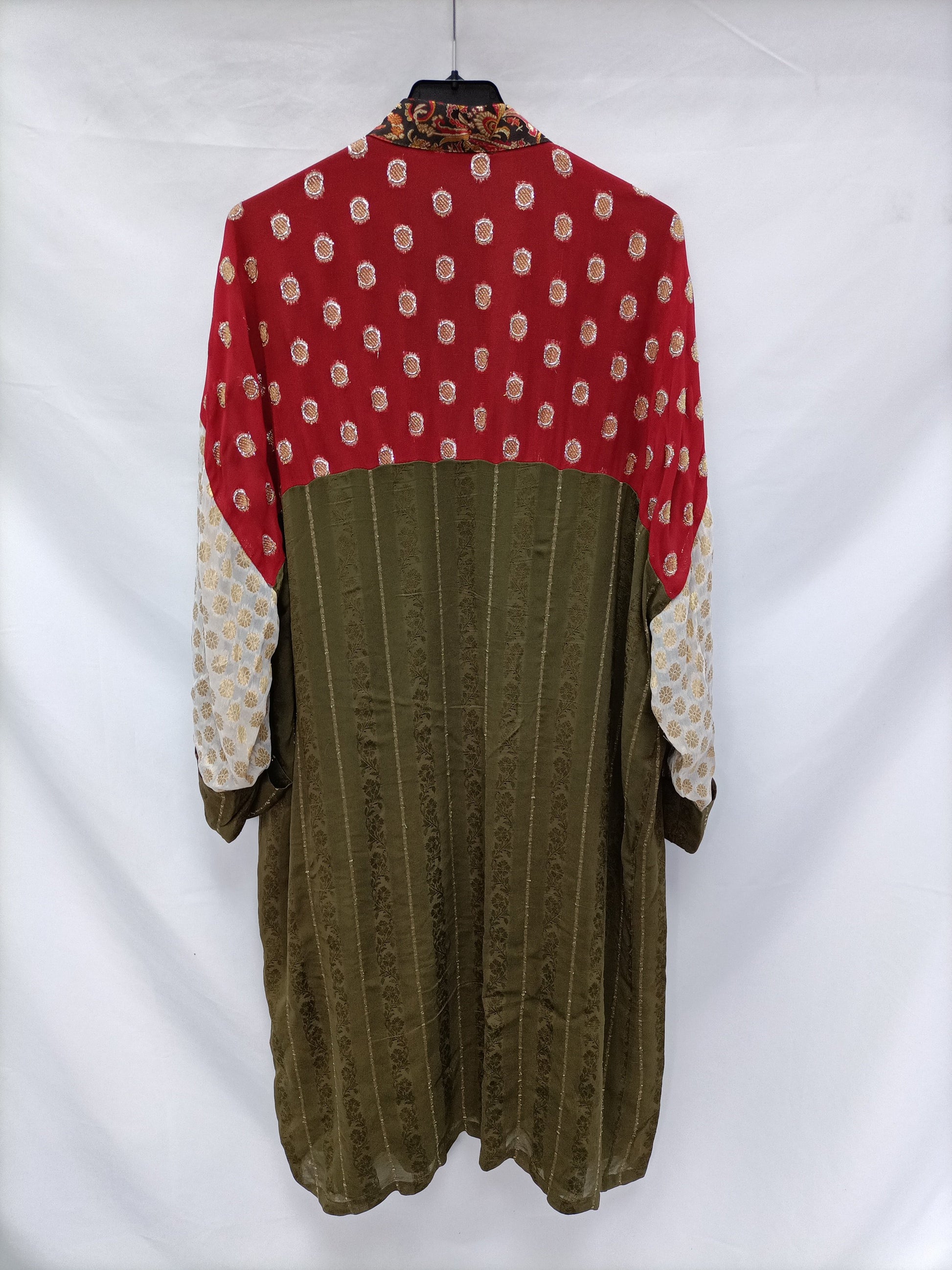 Kimono largo con varios estampados y bordados. Fluido y No elástico. De sisa a sisa 62 cm largo 110 cm