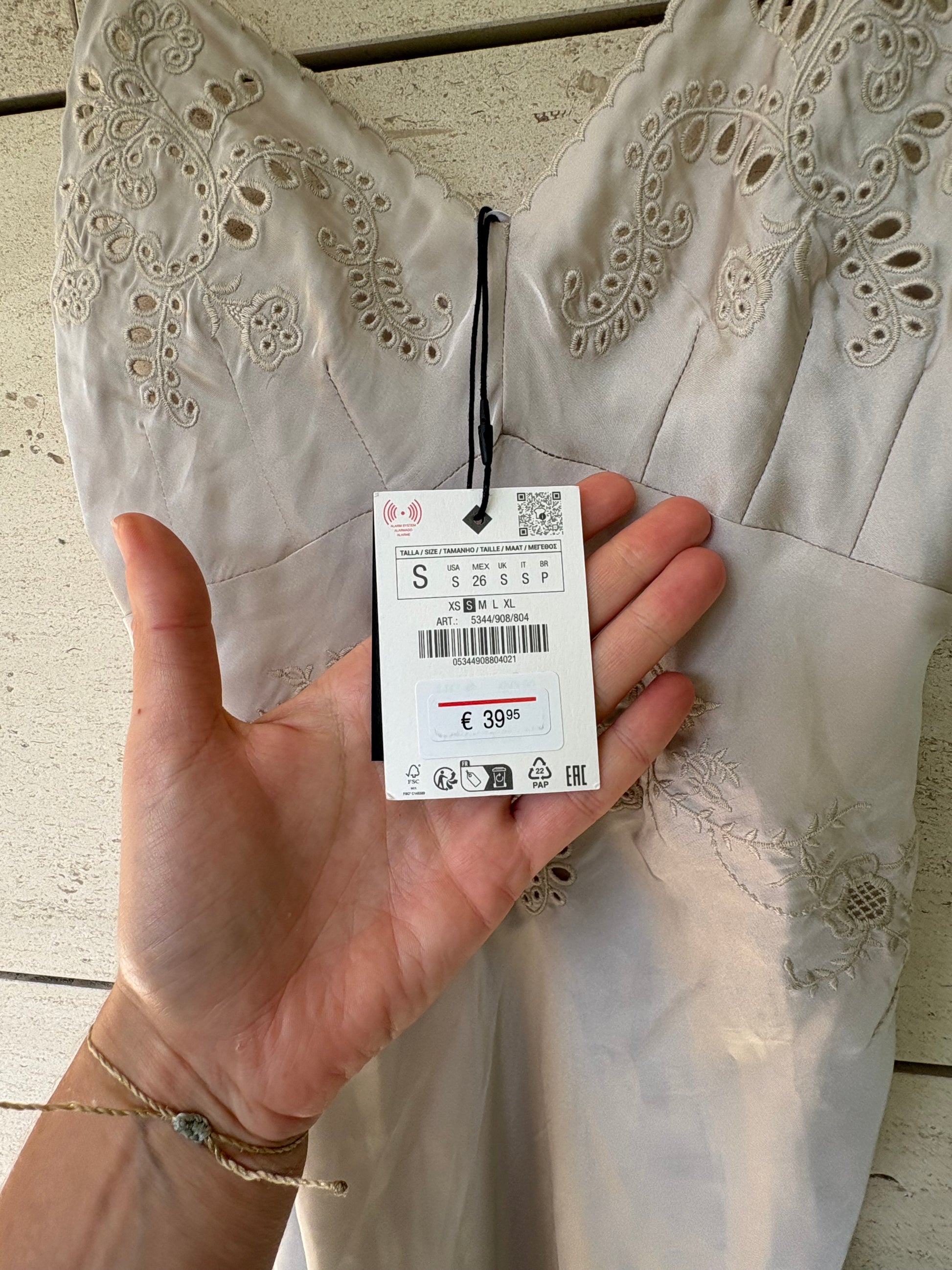 ZARA. Lencero gris claro bordados. T S