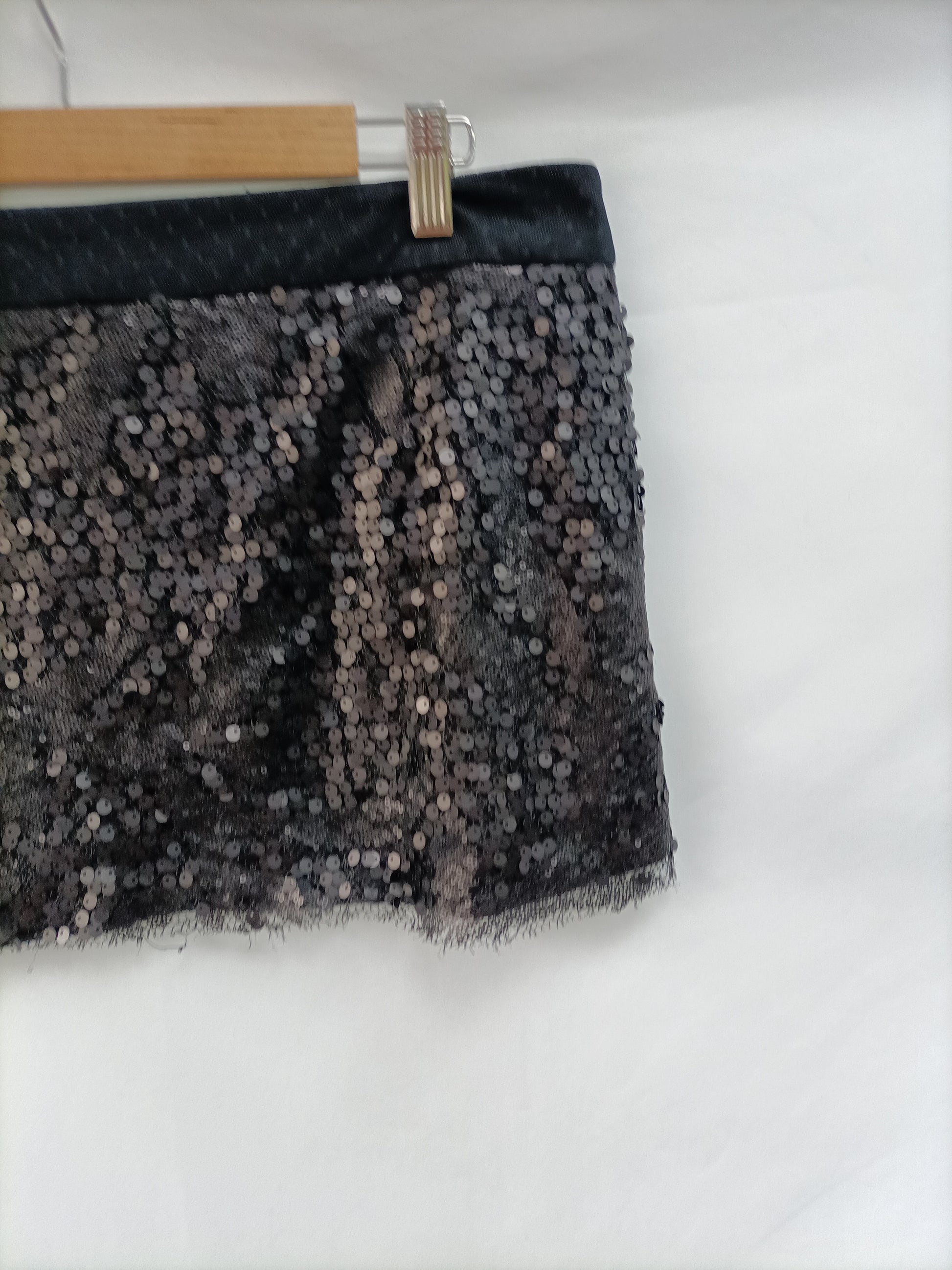 Zara. Falda corta negra de lentejuelas. No elástica. Se abrocha con cremallera. Cintura 43 cm largo 41 cm
