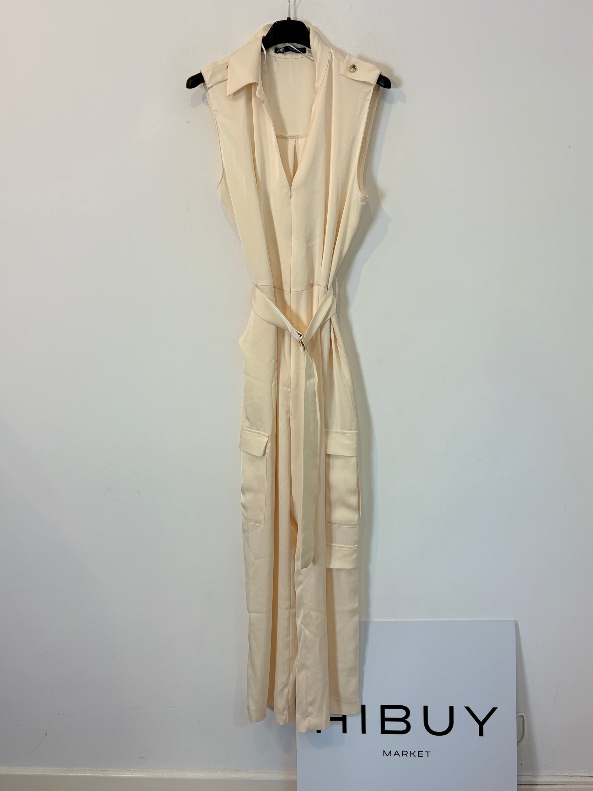Mono beige satinado. Largo 146 cm, espalda 49 cm