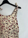 Mono beige textura estampado flores. Tejido no elástico. Cibtura 34cm elástica
