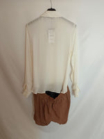 NUEVO CON ETIQUETA. Mono corto bicolor con apertura en la espalda.