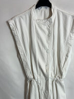 Mono largo vaquero blanco. Tejido semi elástico. Tara: tiene un botón un poco descascarillado