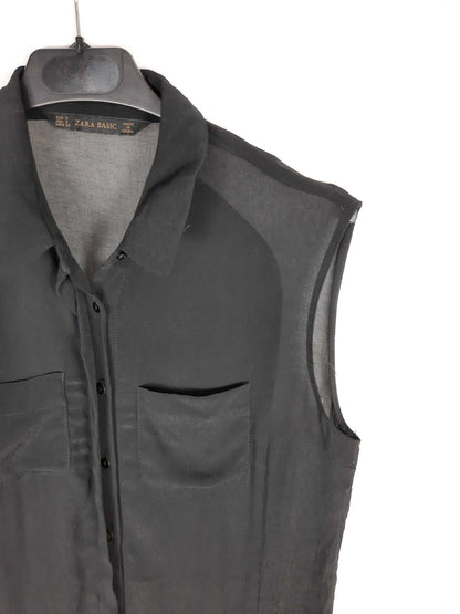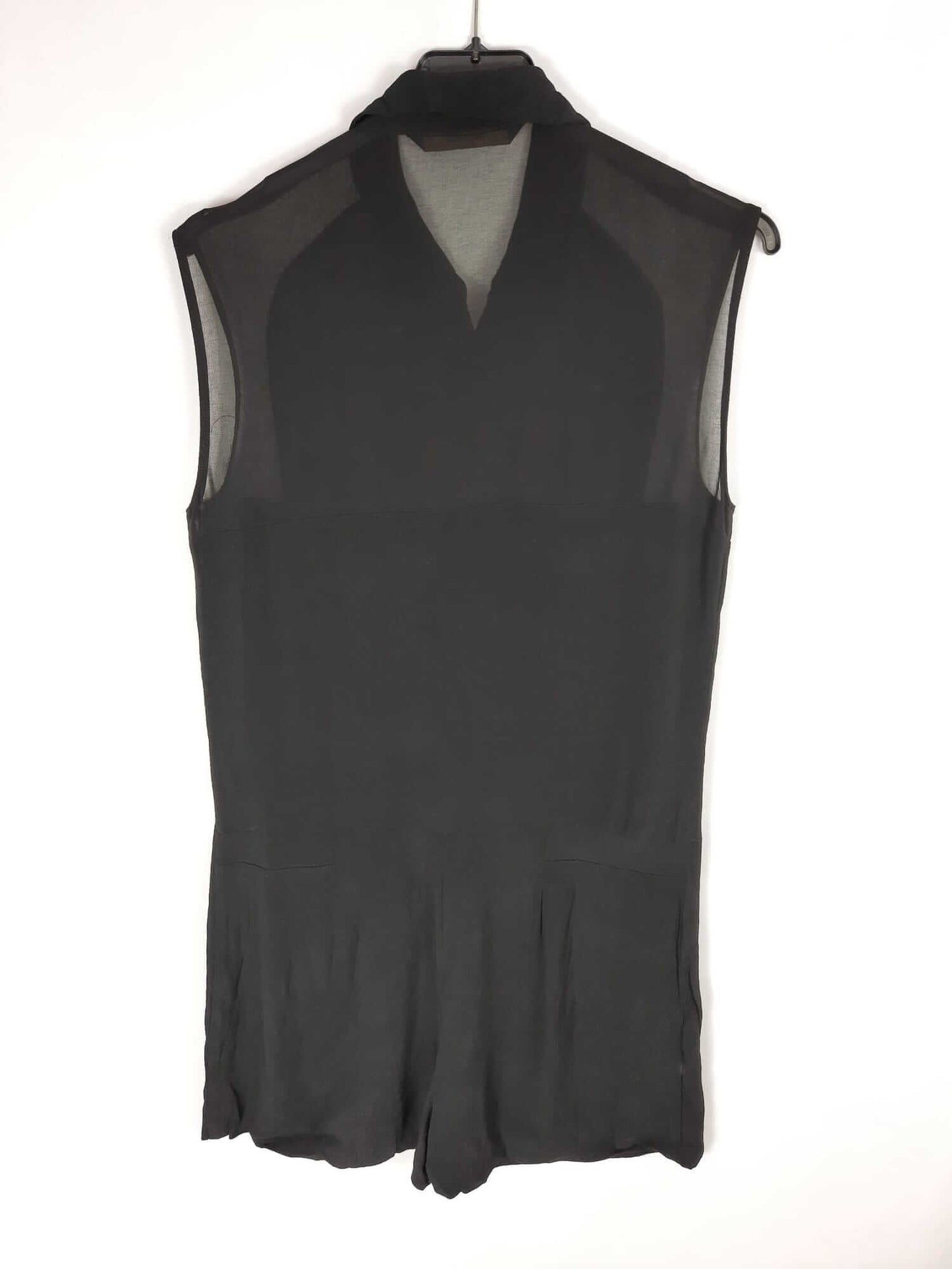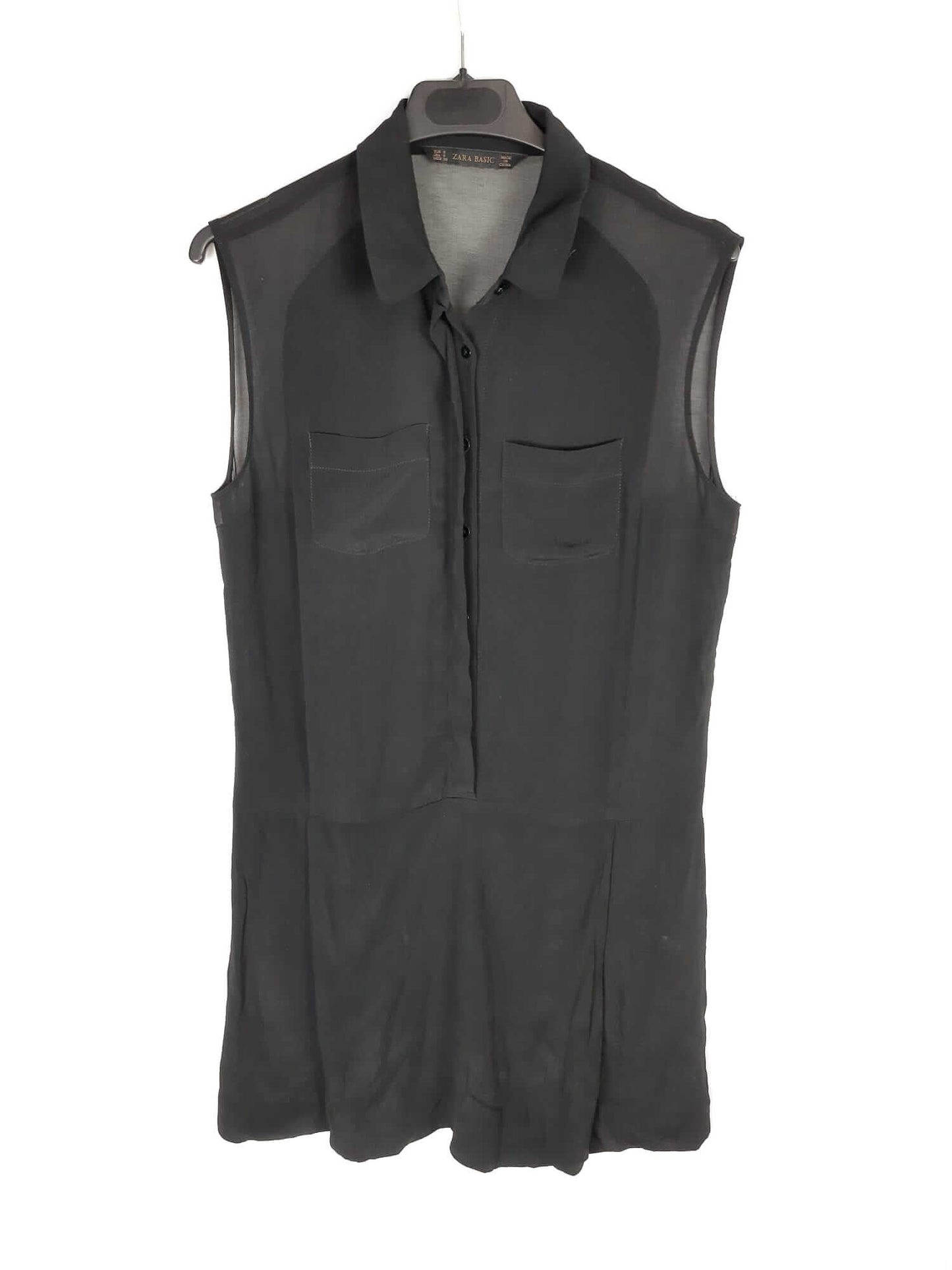 Zara. Mono negro abotonado con la parte de arriba abotonada y detalles semitransparente. De sisa a sisa 48 cm largo 85 cm