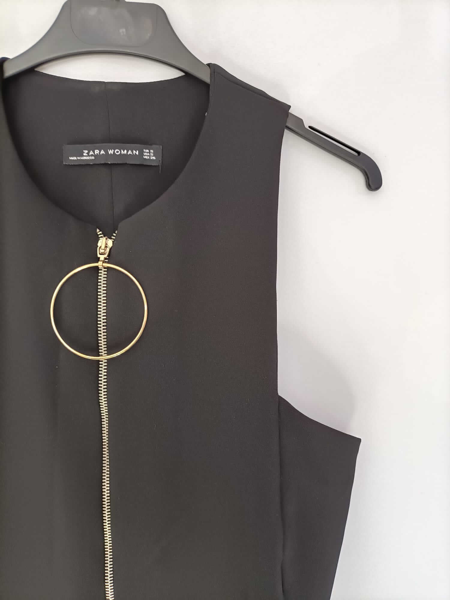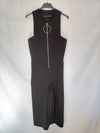 Zara. S. Mono negro estilo culotte con cremallera delantera. Fluido. Escote halter. De sisa a sisa 47 cm largo 131 cm