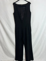 Mono largo estilo palazzo negro con espalda al aire y escote cruzado.