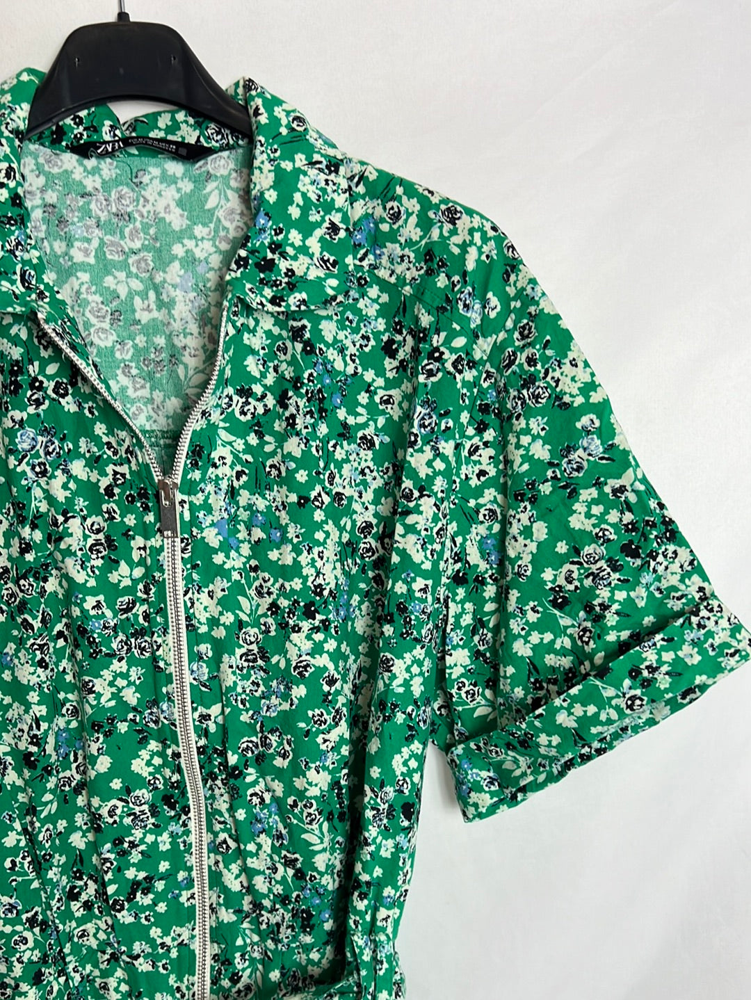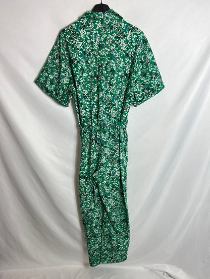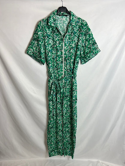 mono verde ancho de flores con cremallera. Largo 138cm, cintura 149cm
