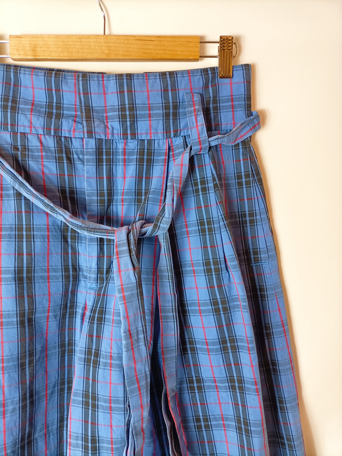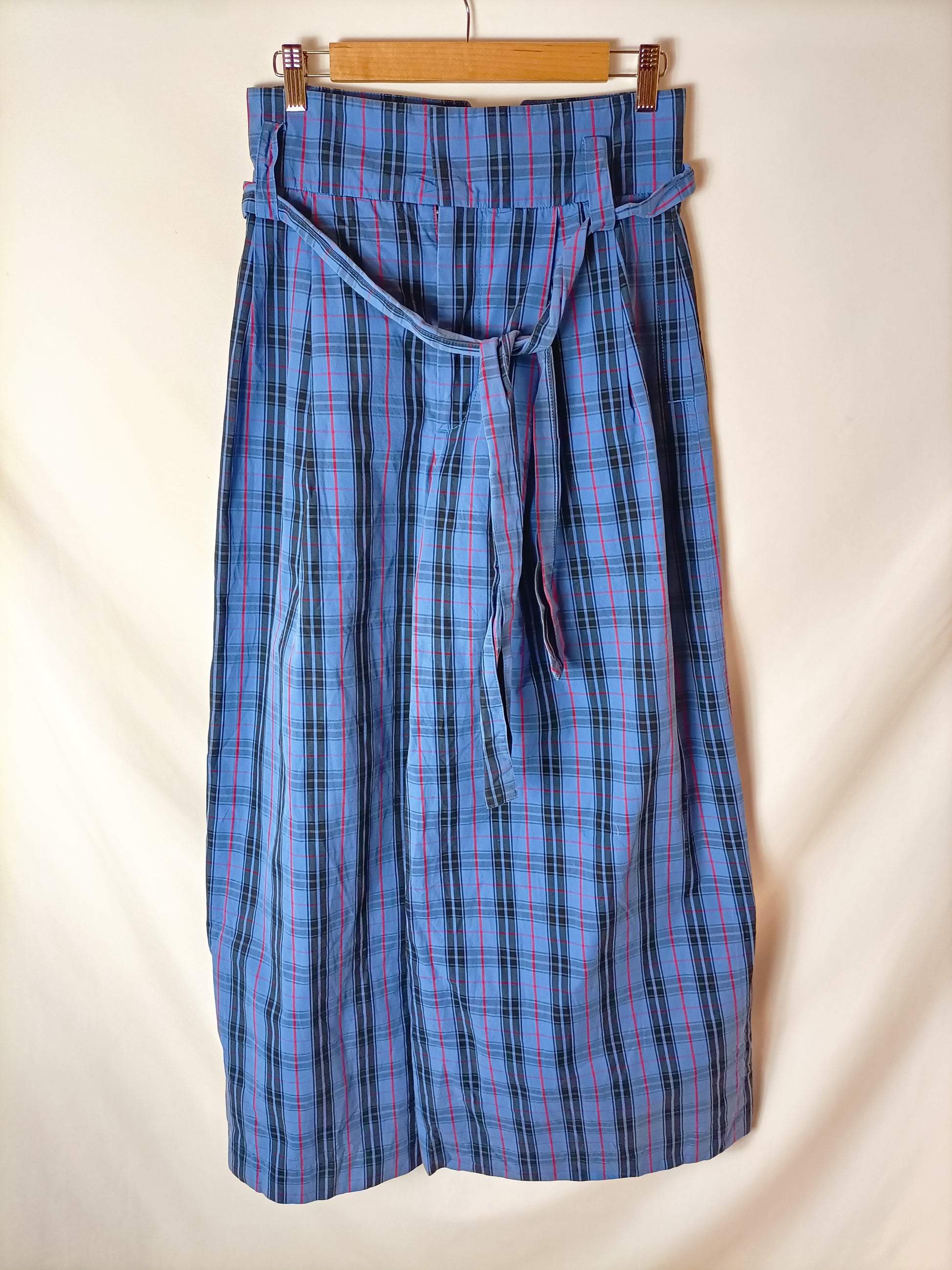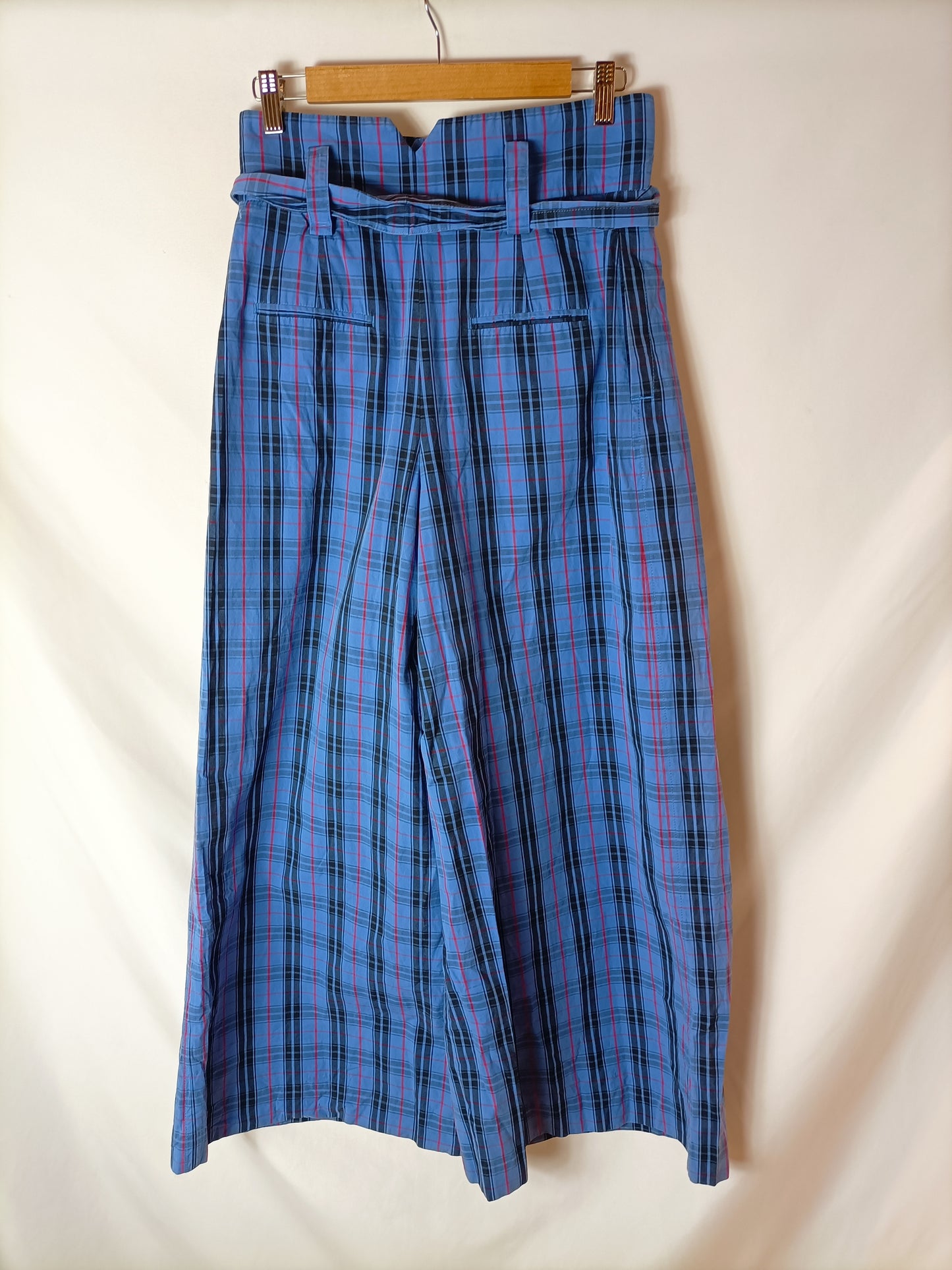 Pantalón ancho azul con cuadros. Alto de cintura con pinzas