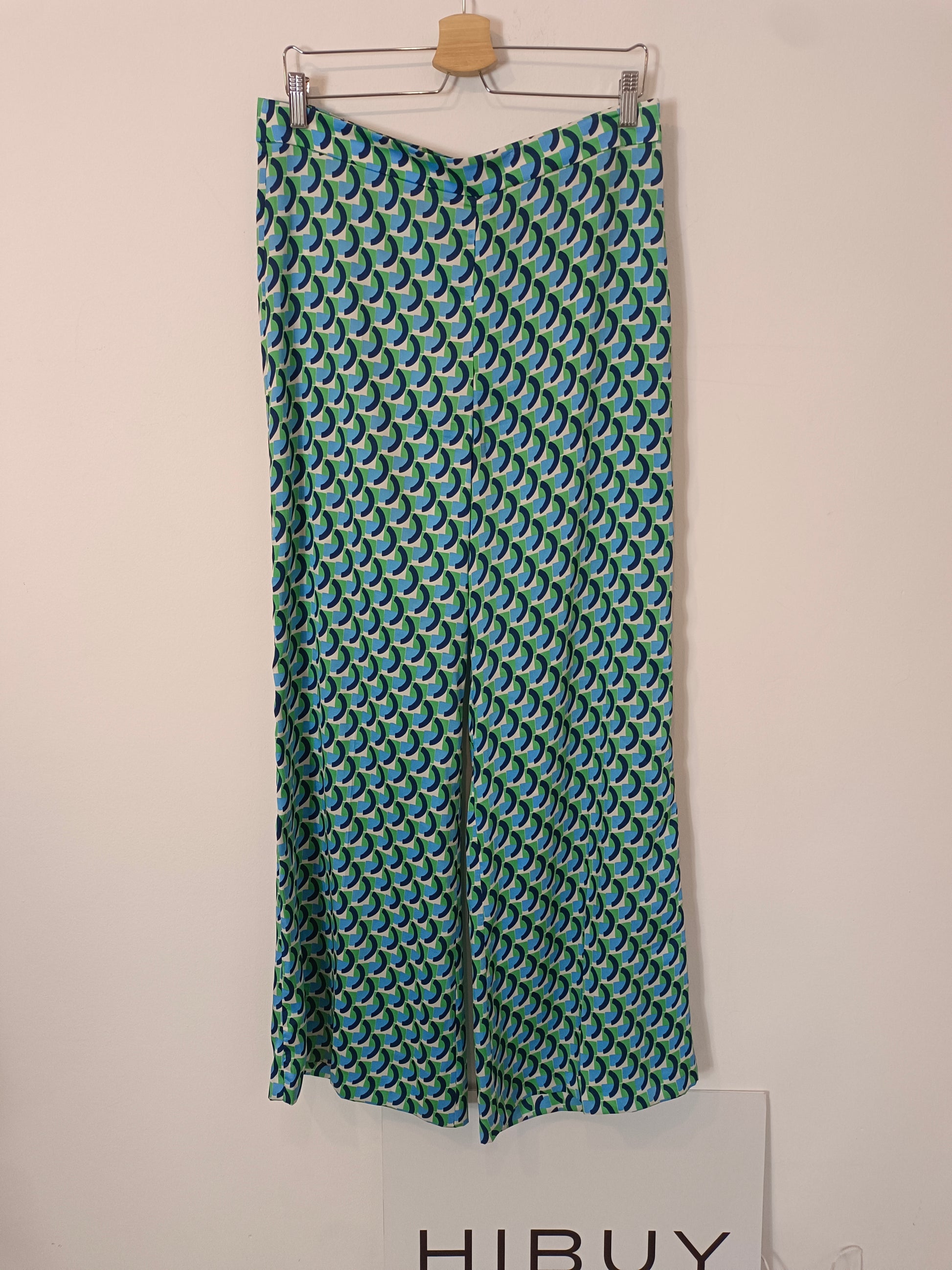 Pantalón fluido ancho estampado en tonos verdes y azules
