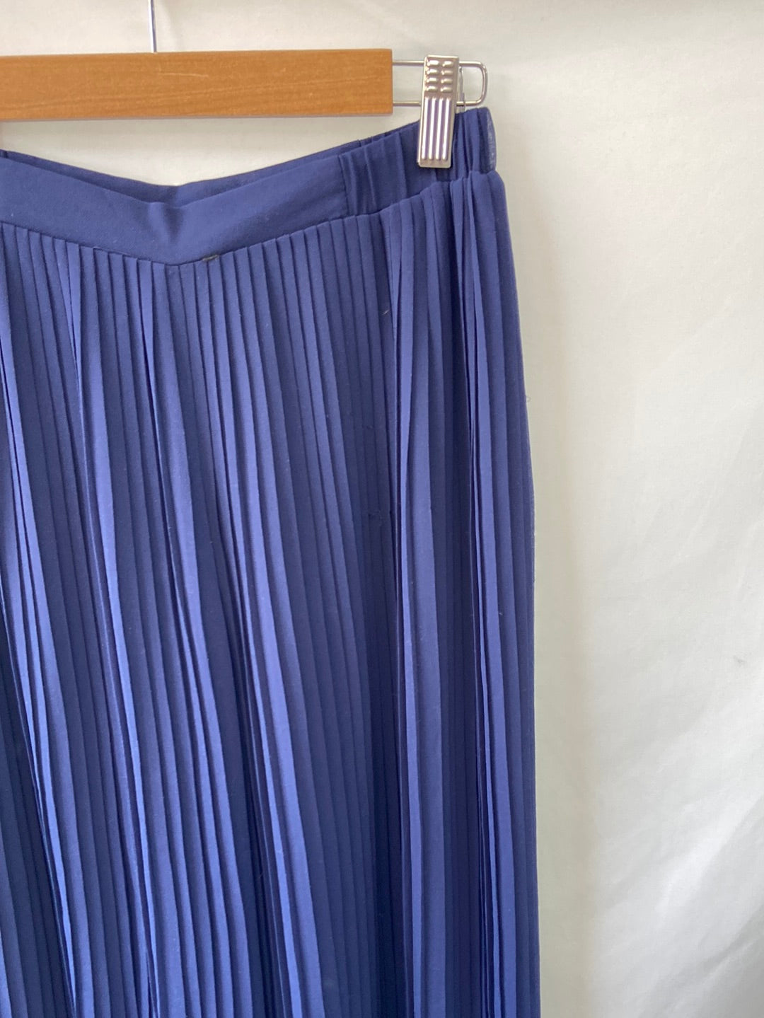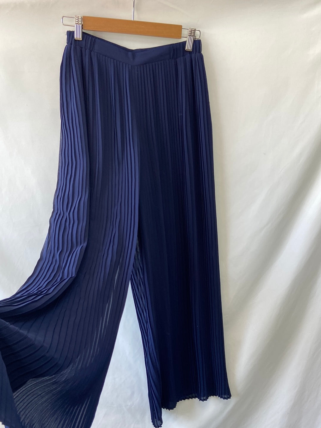 Zara. Pantalón palazzo azul plisado con cintura elástica. Largo 108 cm