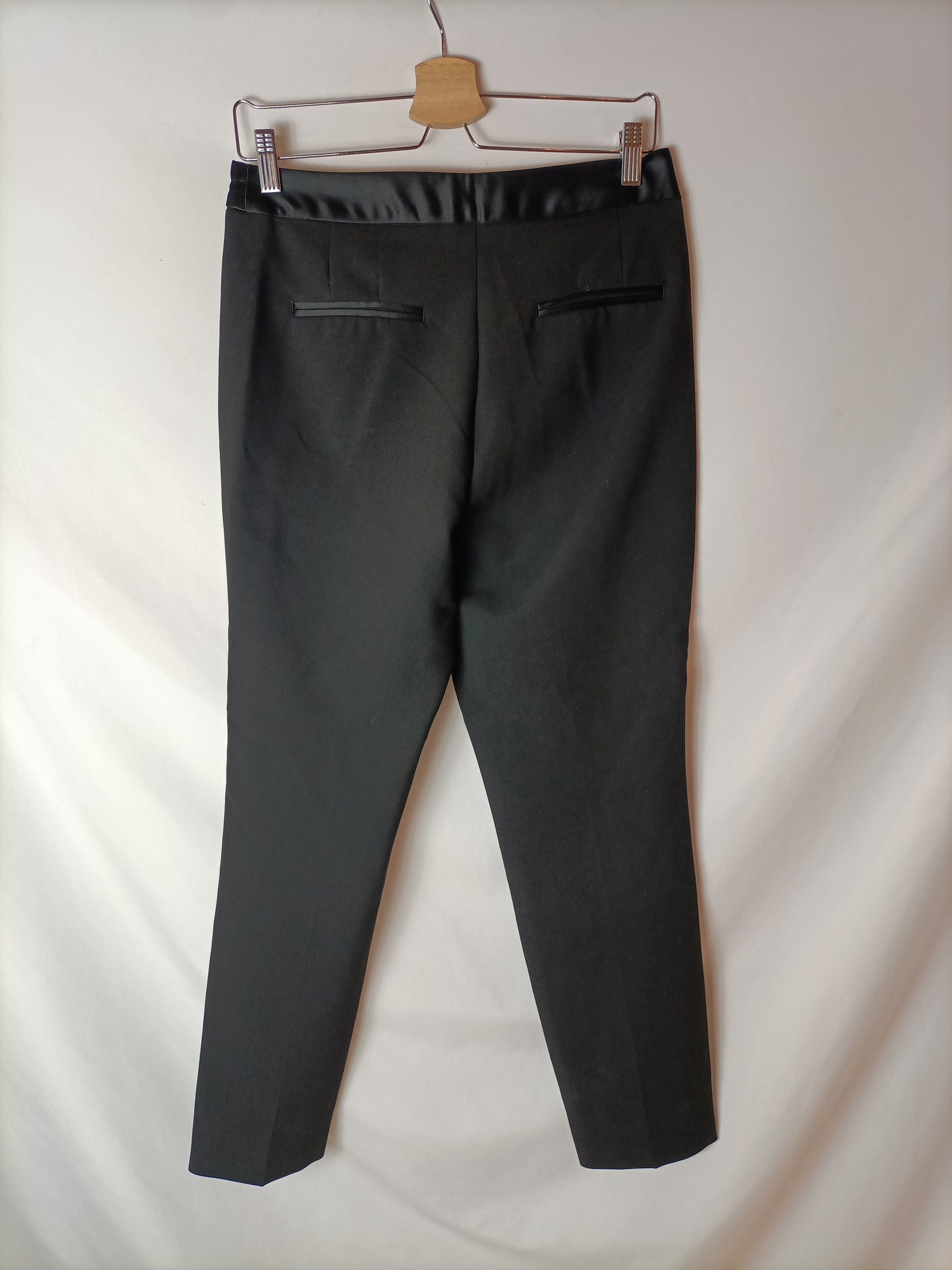 Pantalón negro de vestir estilo chino con cintura y raya lateral de raso. Cintura 38 cm
