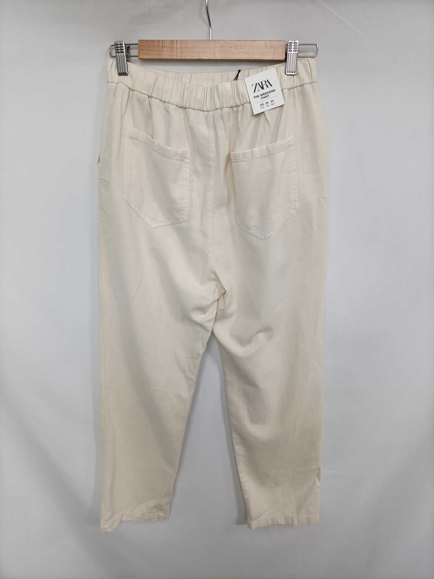 Zara. Xs NUEVO CON ETIQUETA. Pantalón beige fluido de algodón. Cintura elástica. Largo 91 cm. 29,99 euros