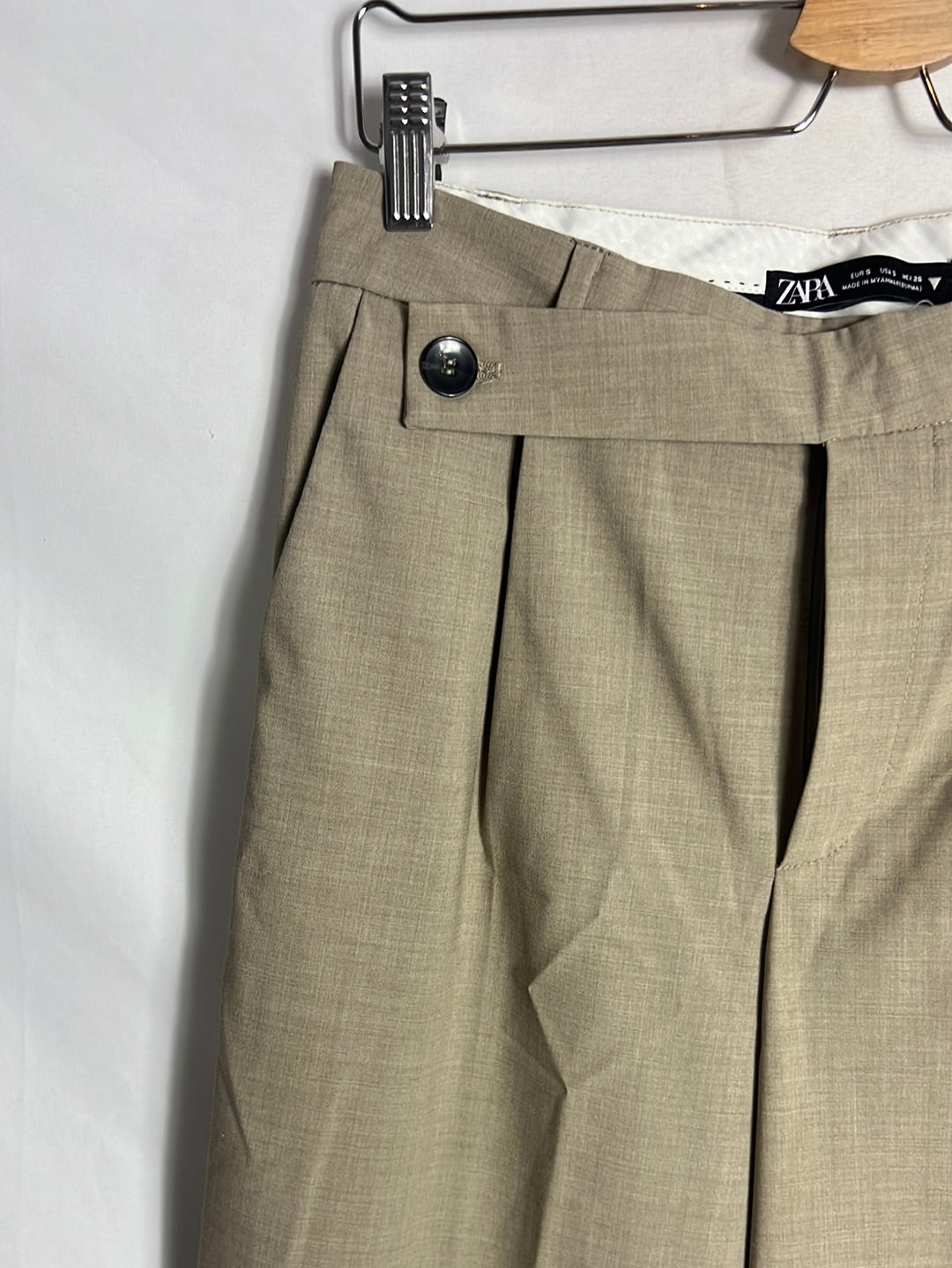 ZARA. Pantalón beige jaspeado de vestir. T S