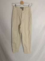 Pantalón beige de tejido denim con pinzas anchos. Estilo slouchy