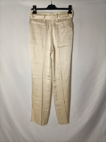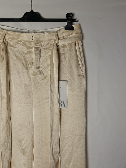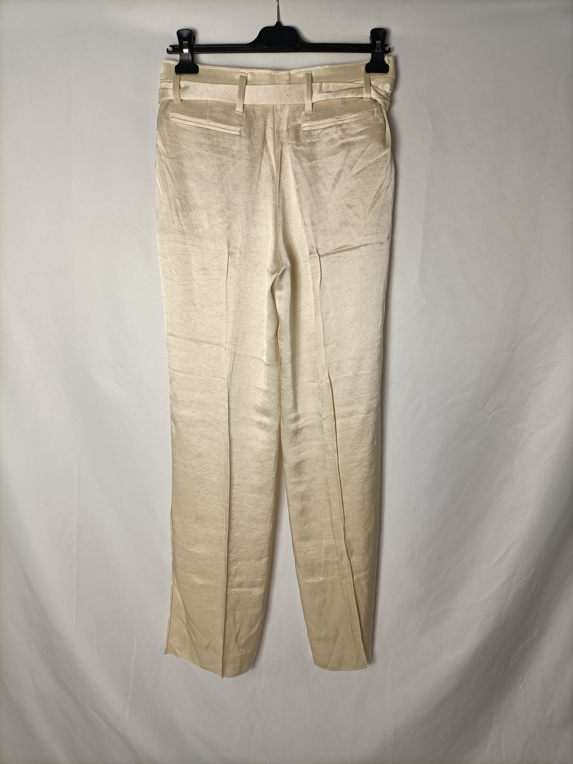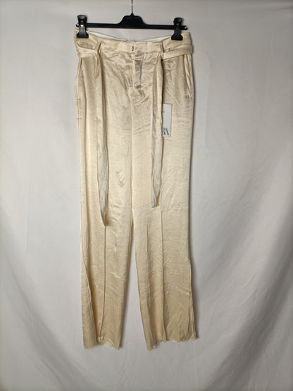 NUEVO CON ETIQUETA. Pantalón beige satinado aperturas
