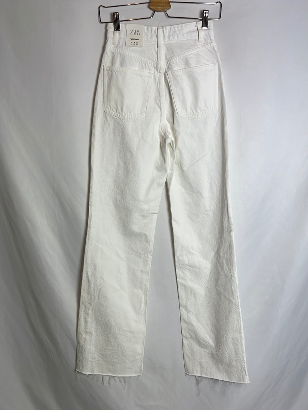 NUEVO CON ETIQUETA. Pantalón blanco pata ancha. Tejido no elástico. Cierre cremallera