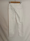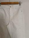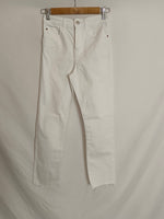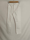 Pantalón blanco denim recto con la parte de abajo deshilachada. cintura 34 cm