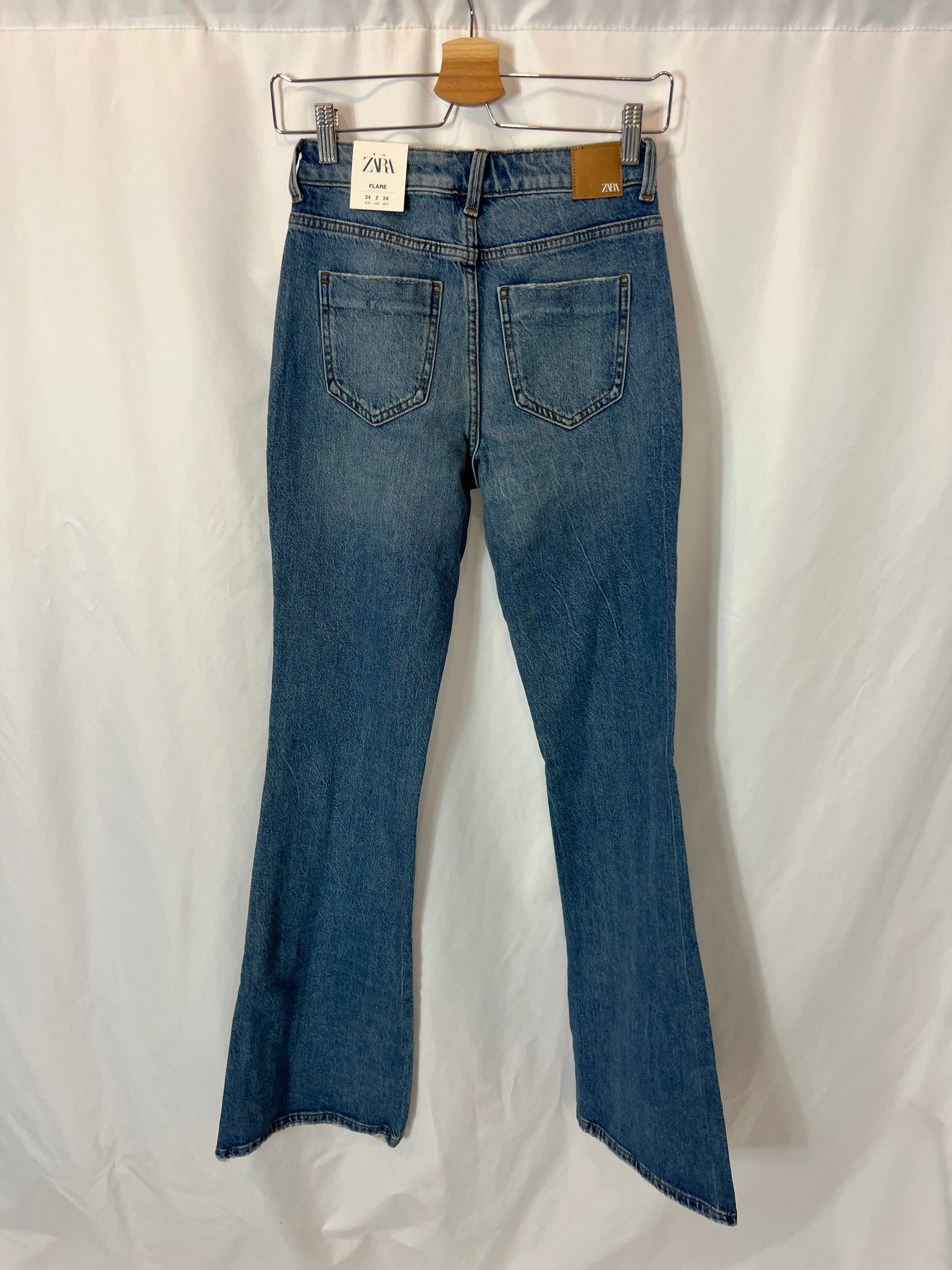 ZARA. Pantalón campana vaquero T.34