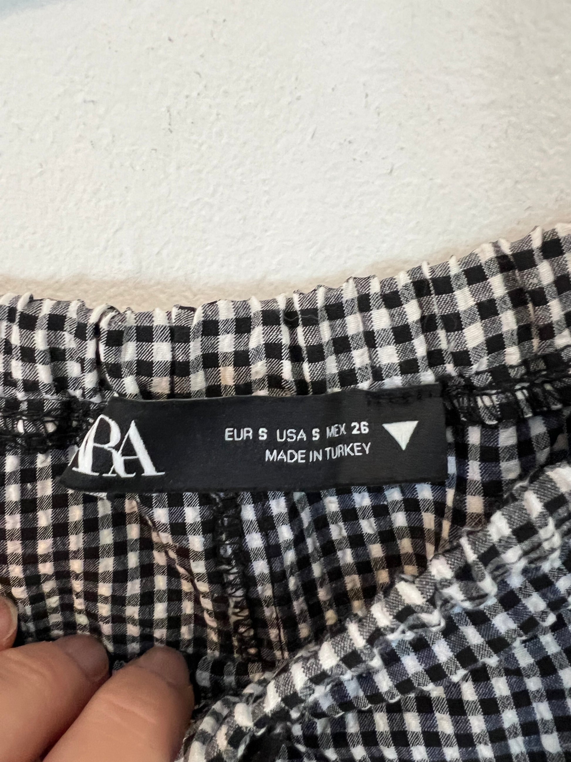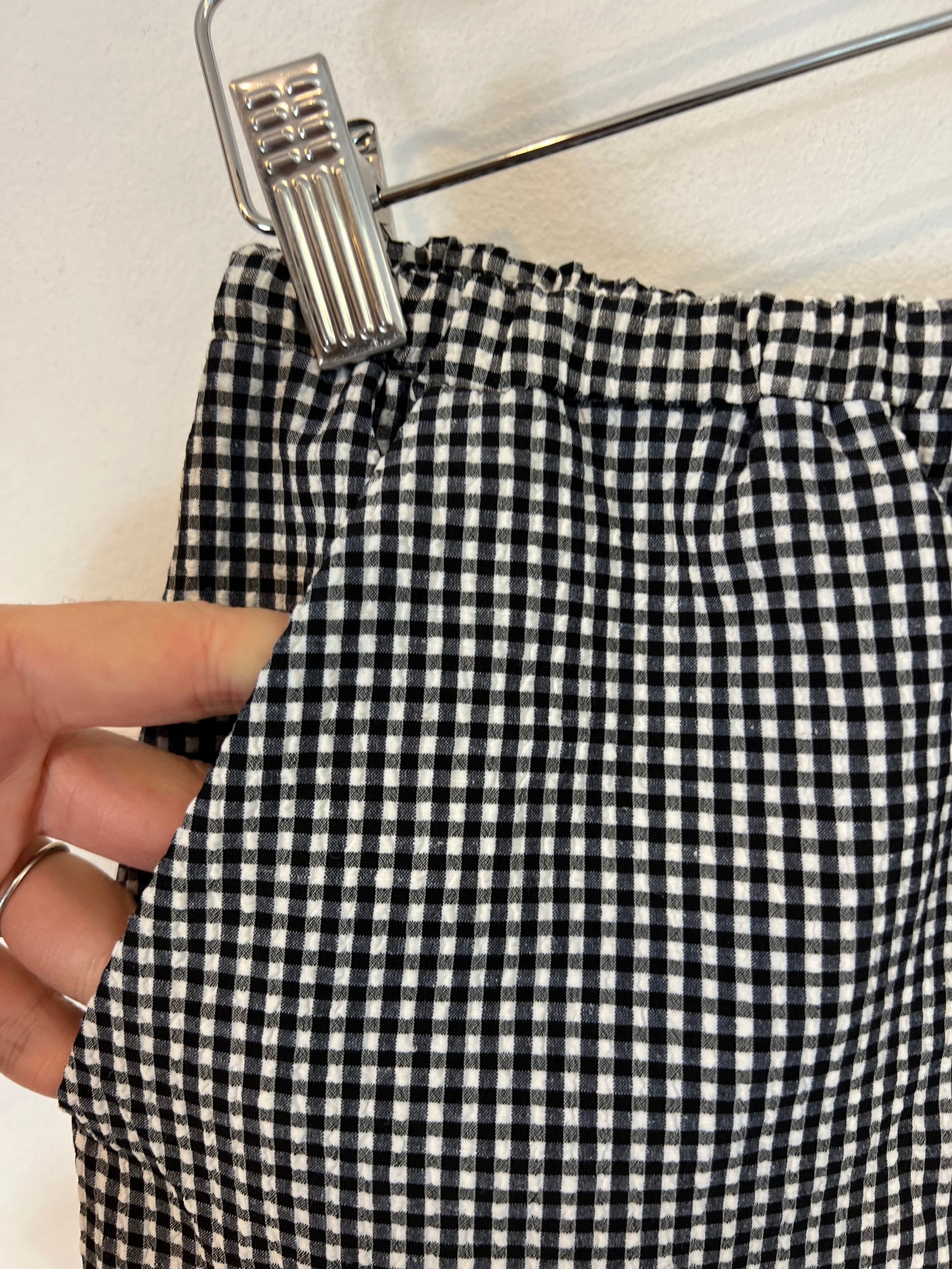 pantalón corto de cuadros negro y blanca de tejido con textura. Cintura elástica.