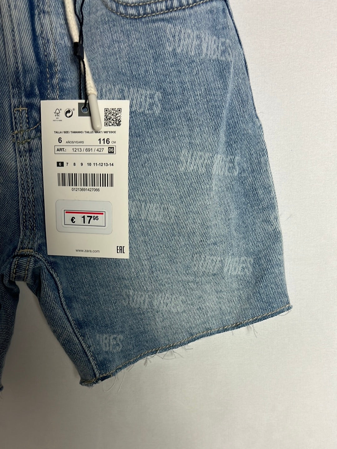 ZARA. Pantalón corto denim letras T 6 años