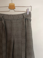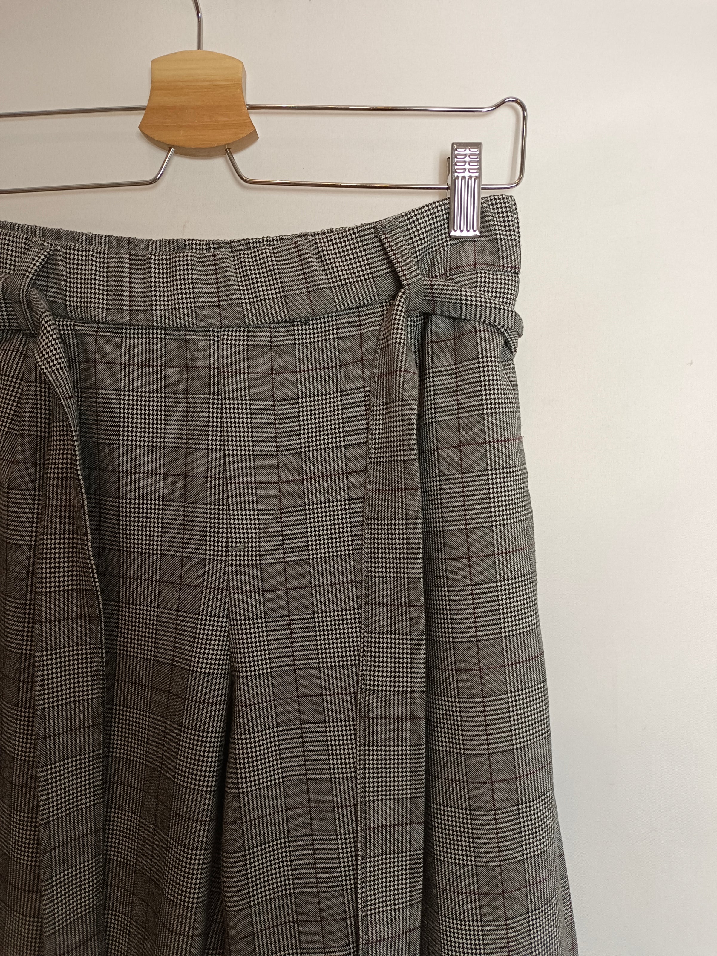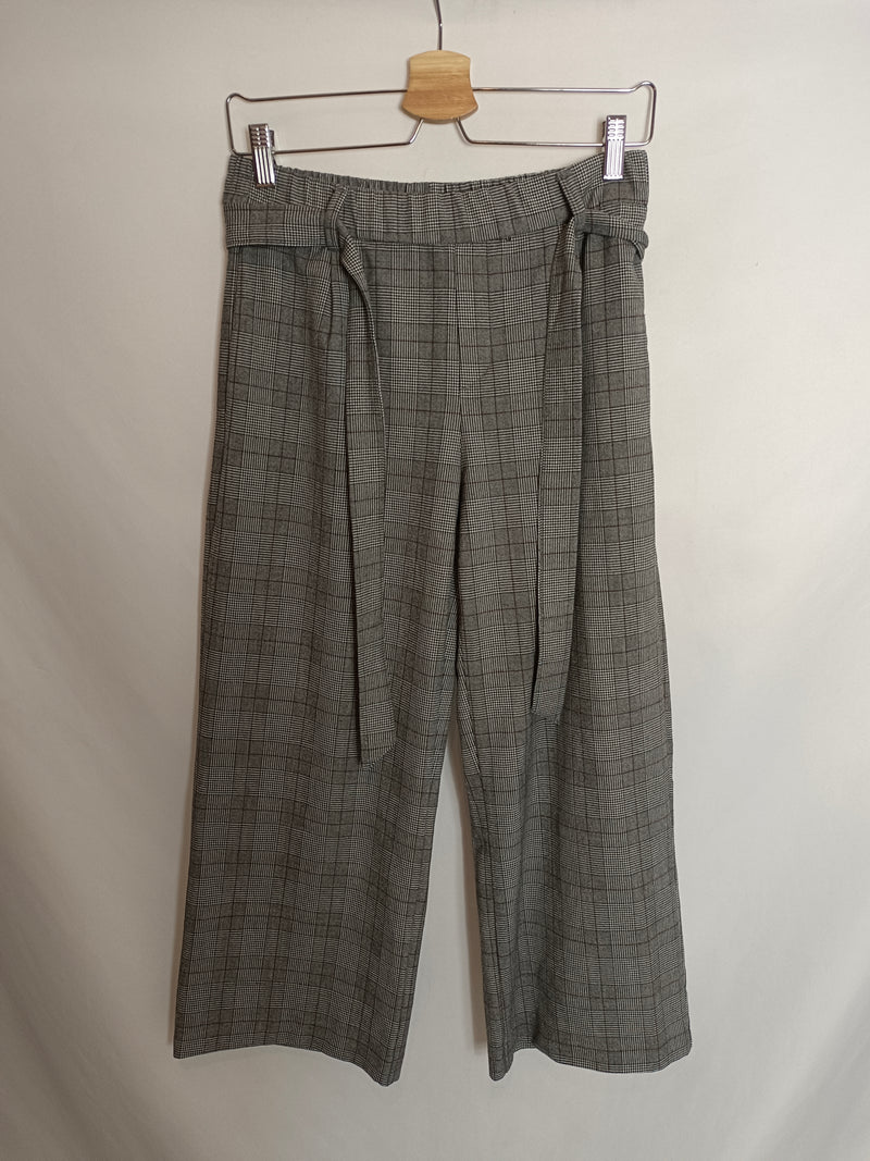 Pantalón gris de pata de callo culotte . cintura elástica con lazada