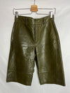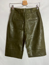 Pantalón culotte verde efecto piel. Tara: mini marca cerca de la cremallera casi imperceptible. Cintura 37cm y largo 62cm