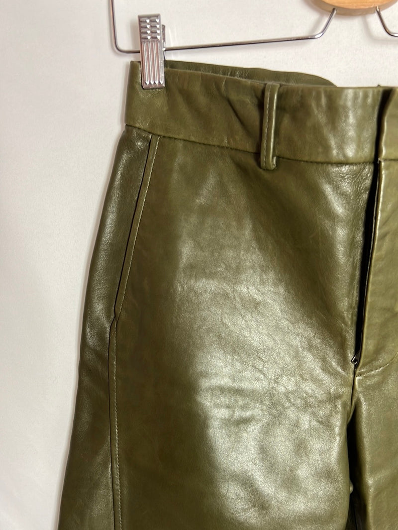 ZARA. Pantalón culotte verde efecto piel. T XS