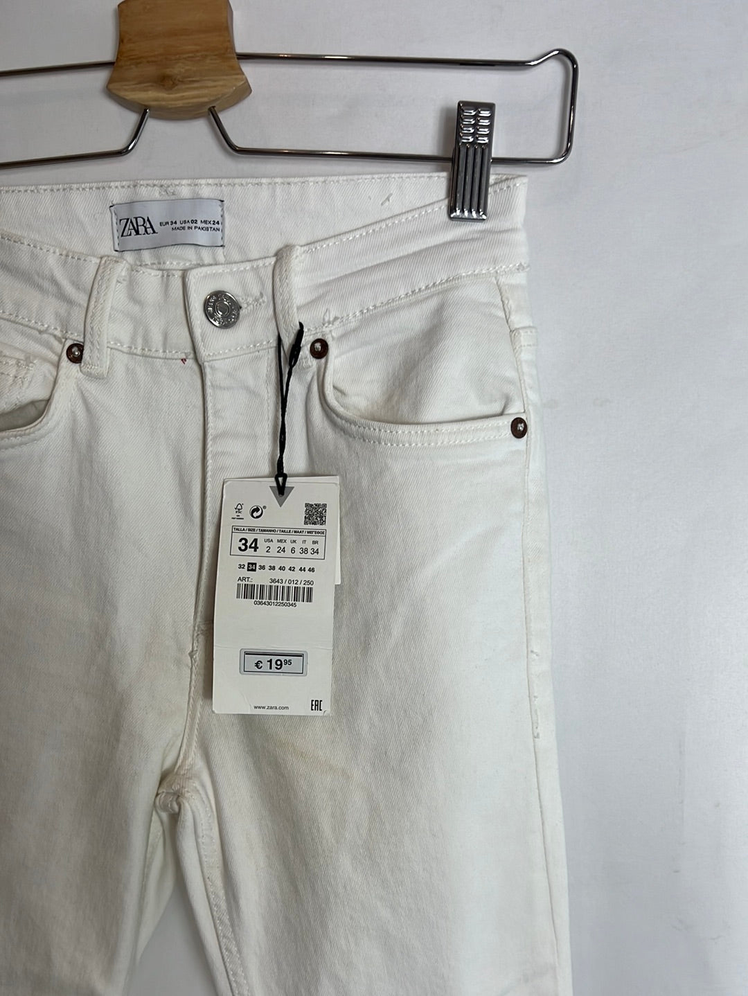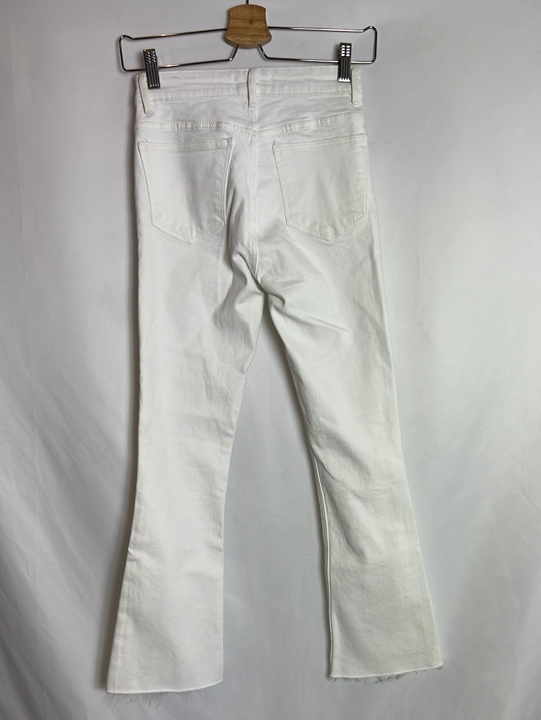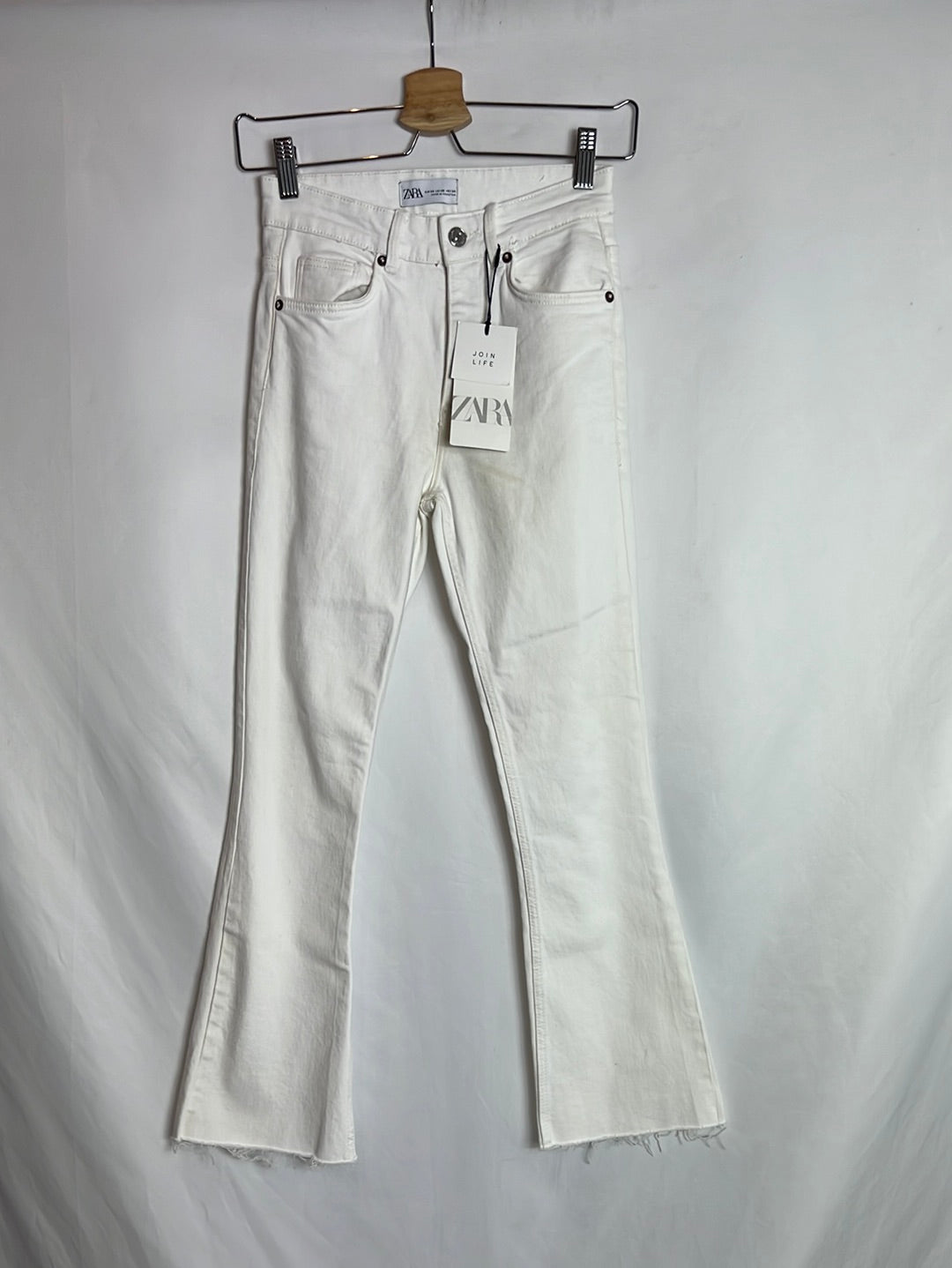 ZARA. Pantalón denim blanco cropped. T 34