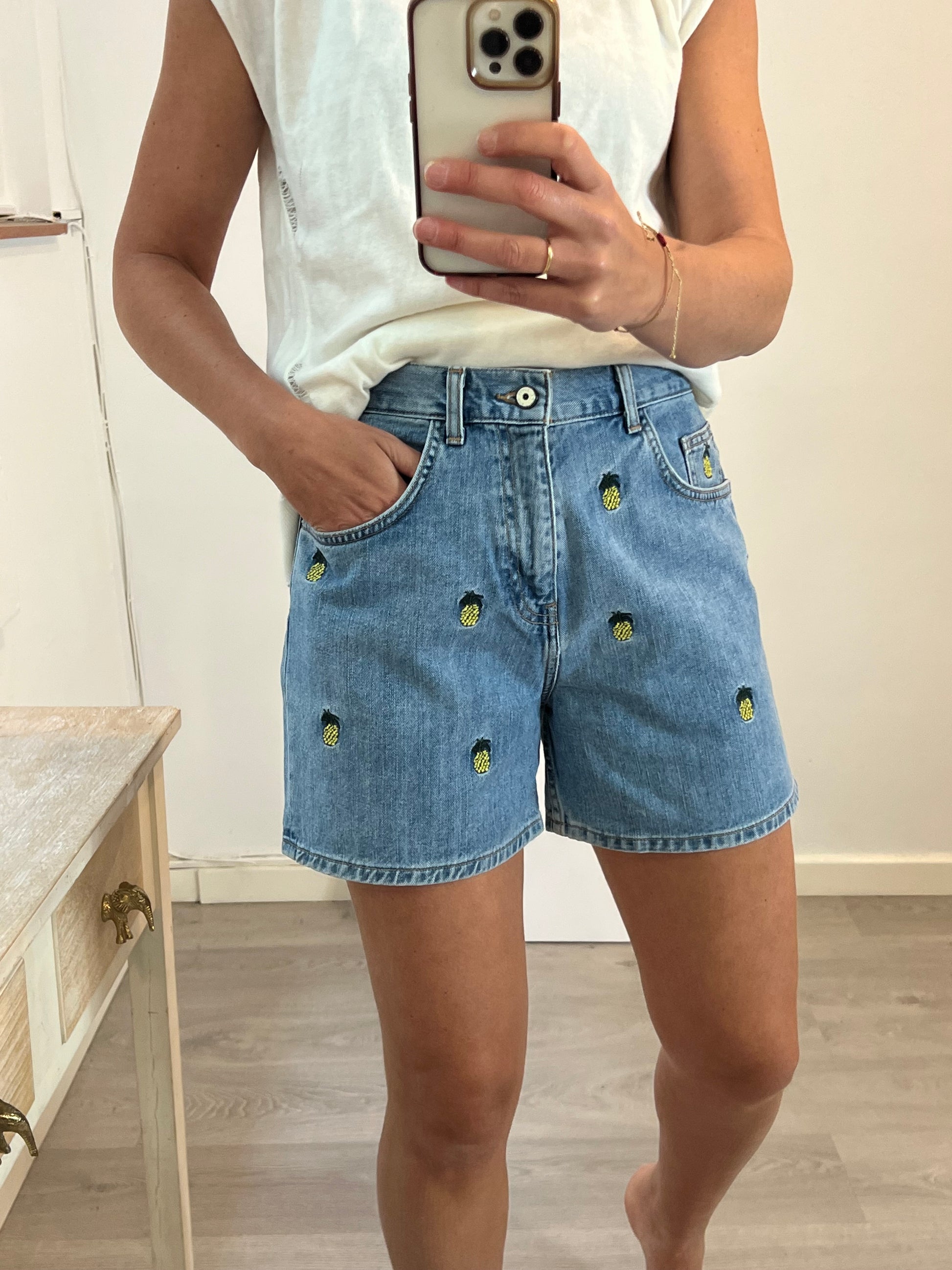 | Pantalón denim bordado piñas |