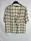 TOP SHOP. Blusa manga corta beige cuadros. T 36