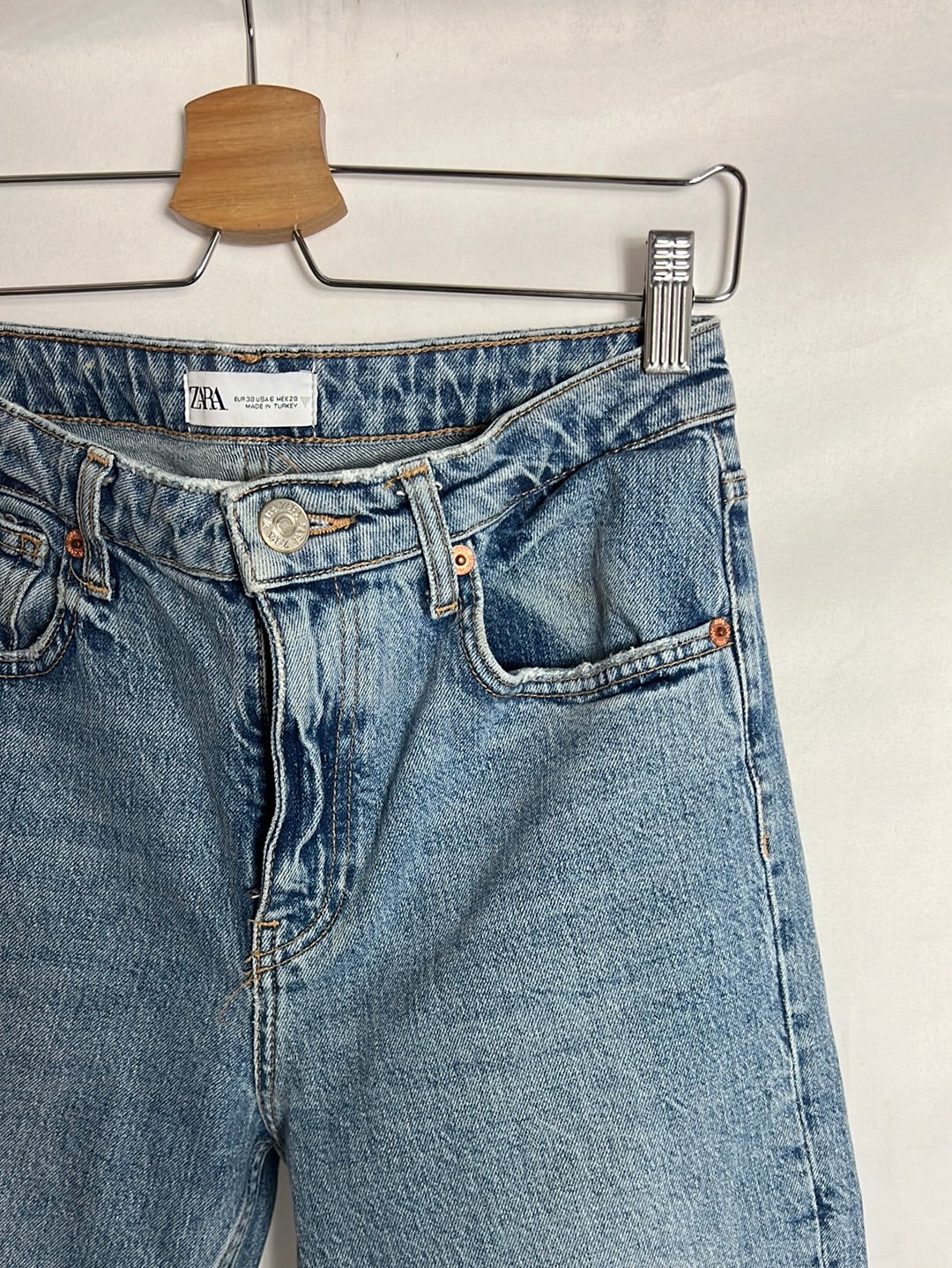 ZARA. Pantalón denim mom fil. T 38