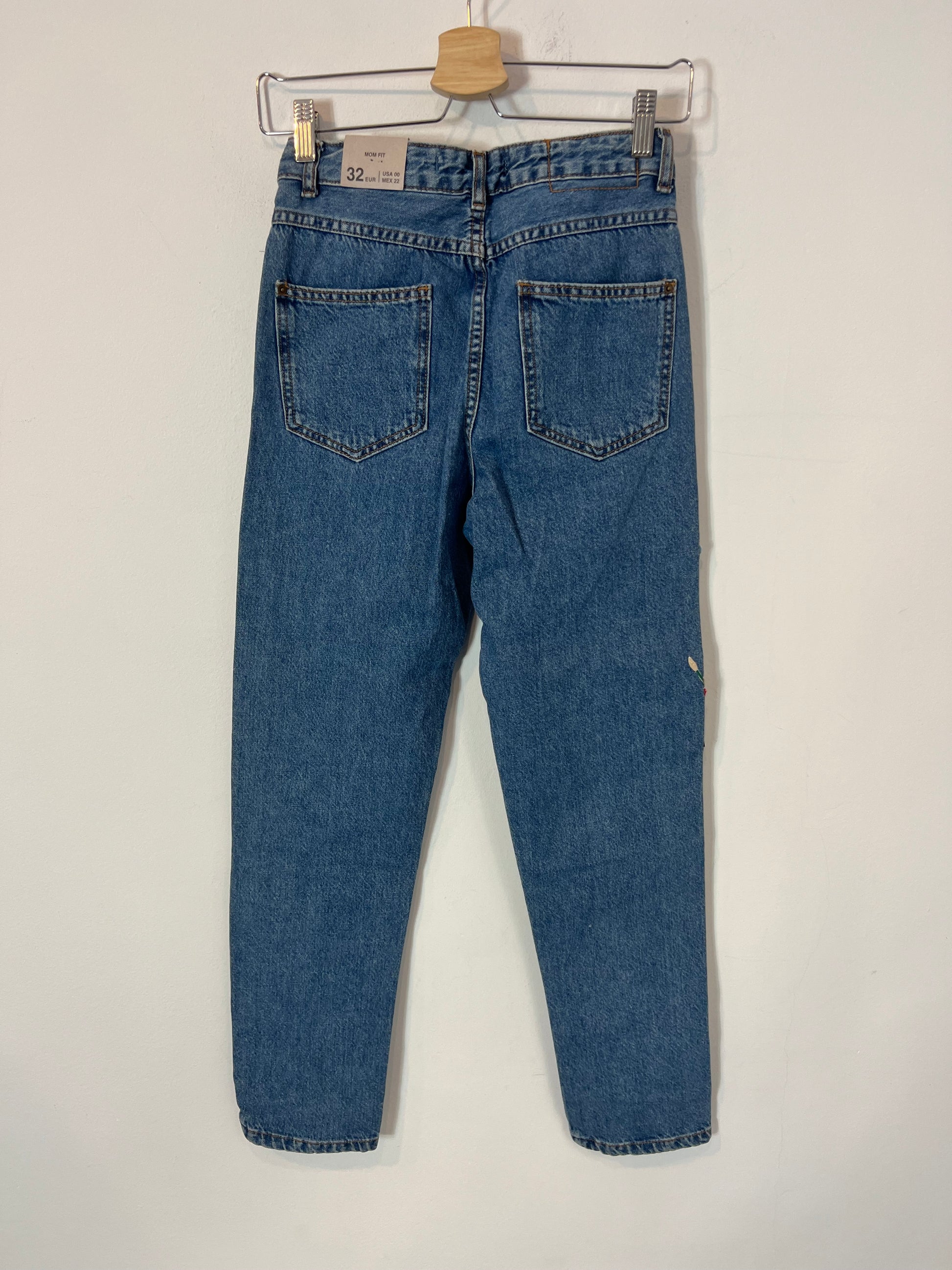 NUEVO CON ETIQUETA. Pantalón denim parches No elastico. Cintura 34 cm, largo 98 cm