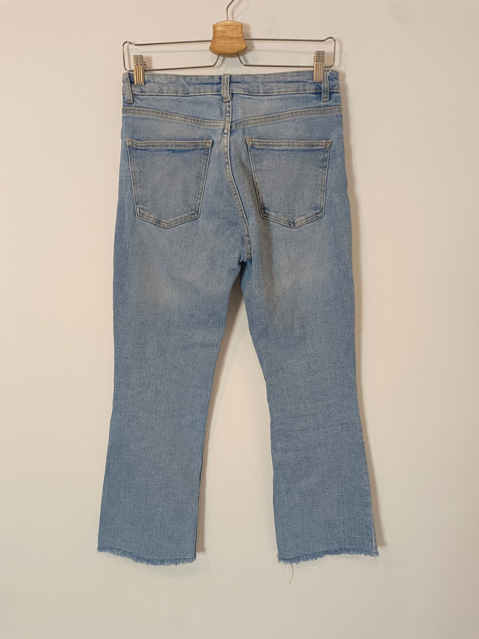 Pantalón ancho vaquero tobillero con detalles deshilachado por debajo