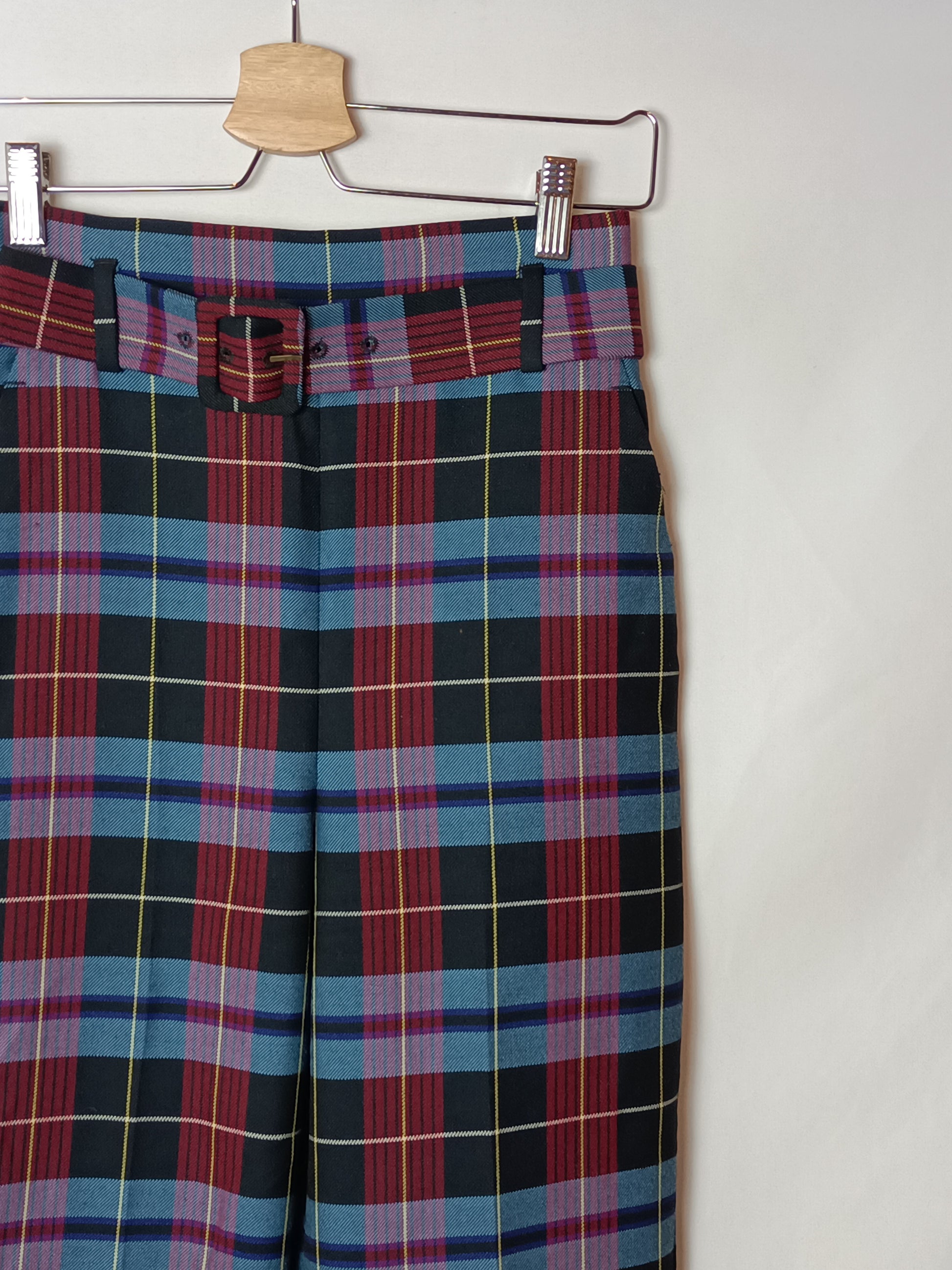 pantalón fluido cuadros con cinturón. no elástico. cintura 32 cm largo 95 cm