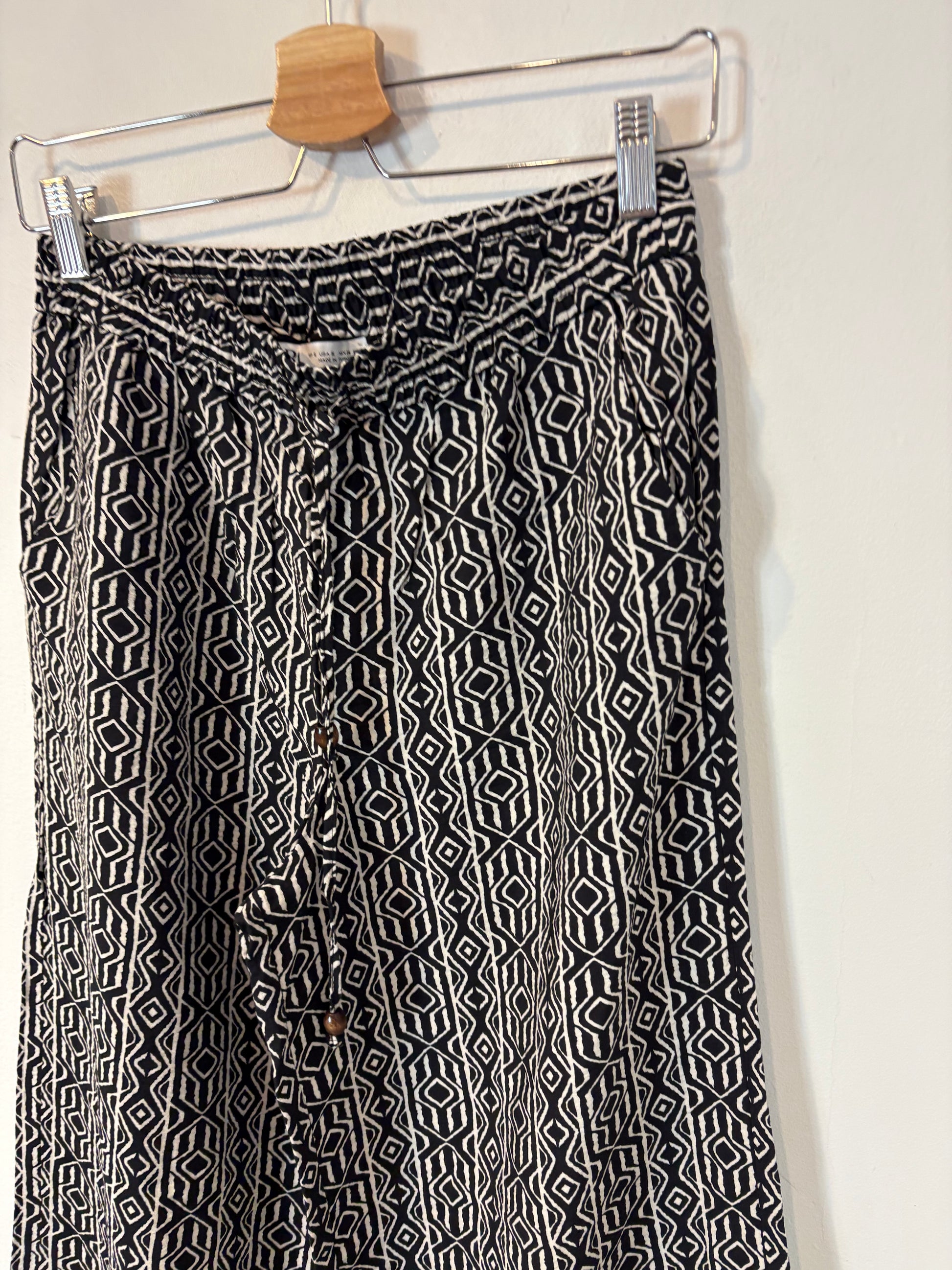 ZARA. Pantalón fluido negro estampado