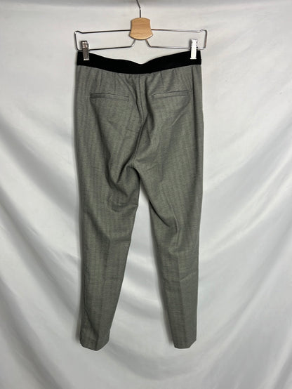 Pantalón de vestir estilo chino gris de espiga. cintura con elástico.