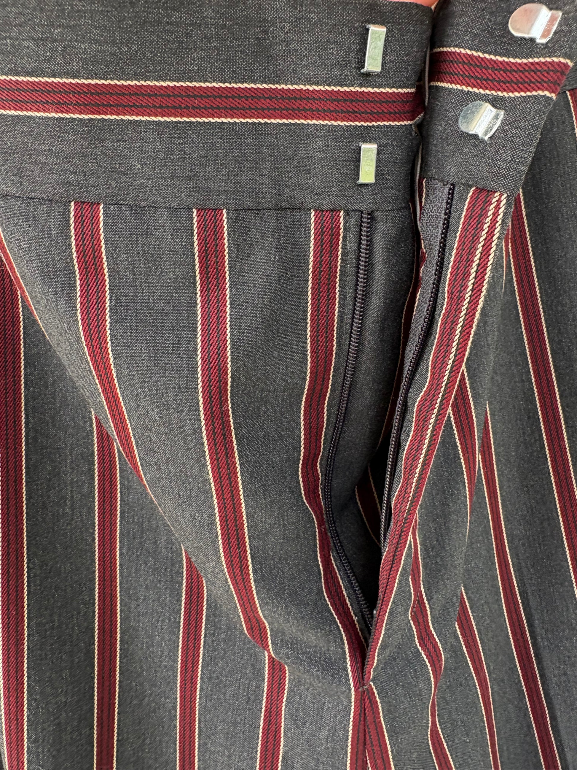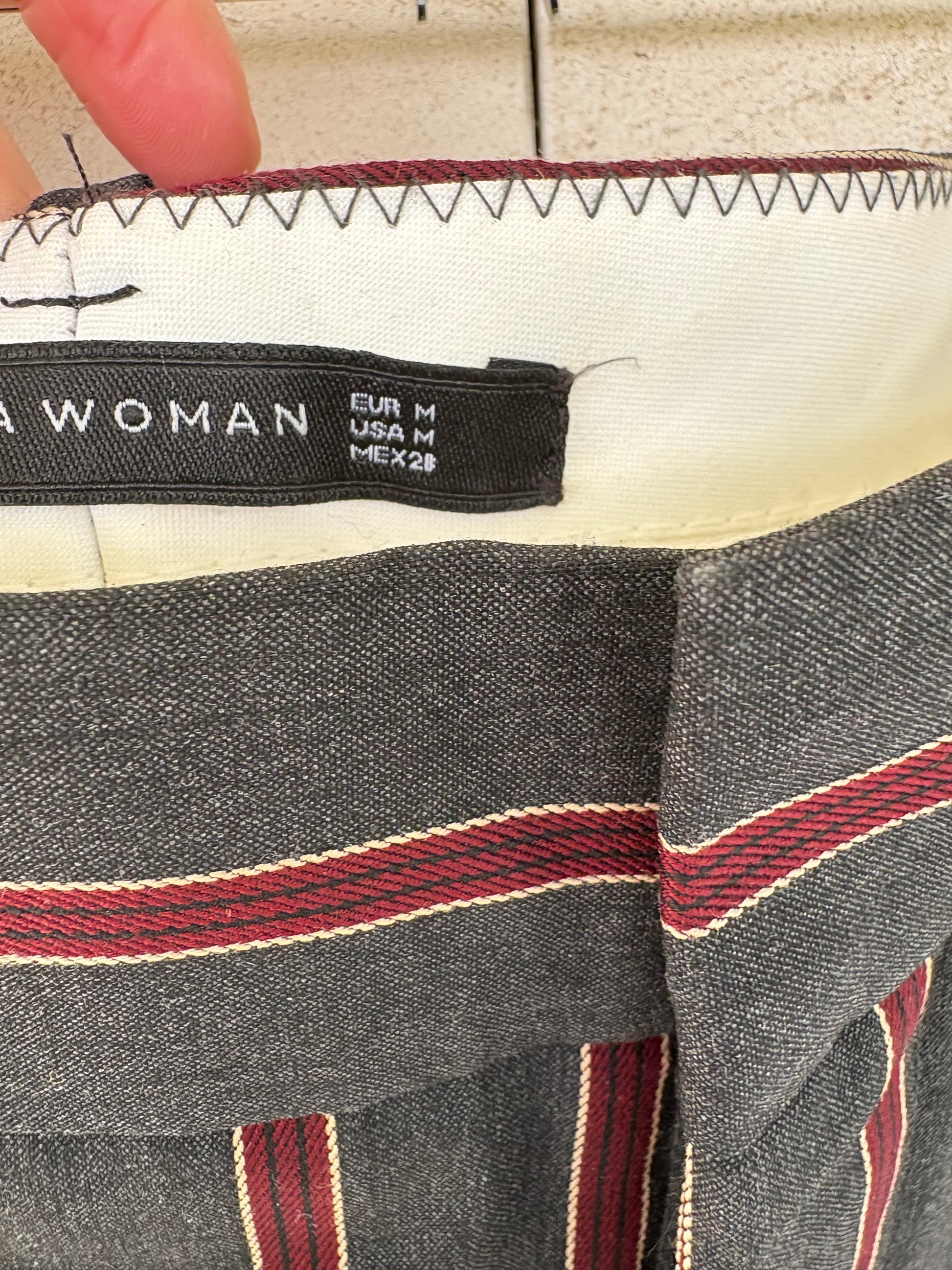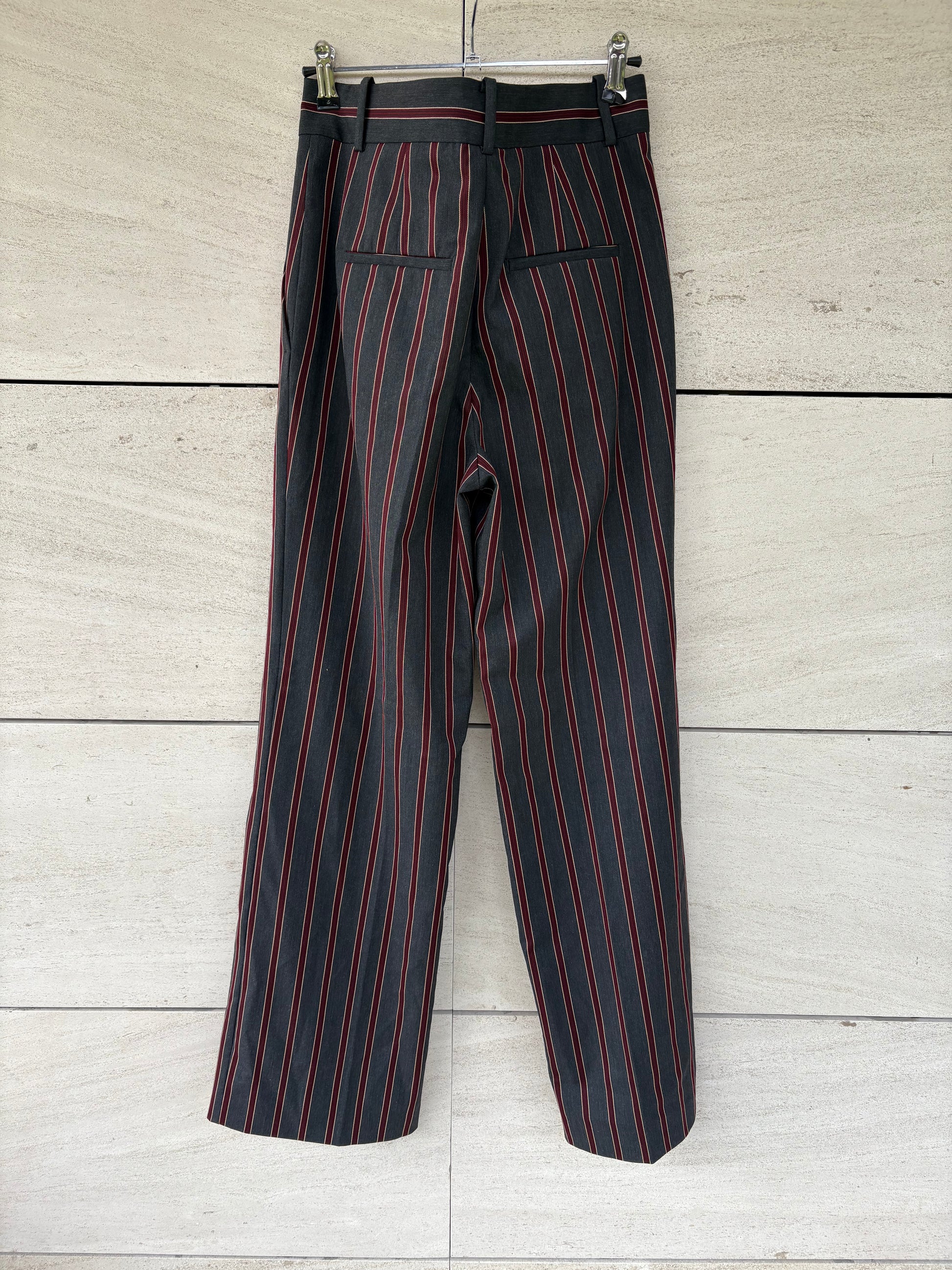 ZARA. Pantalón gris rayas burdeos