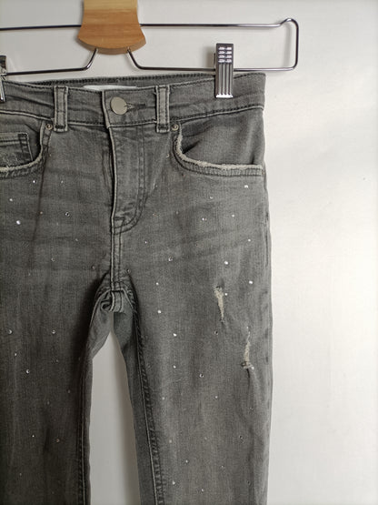 pantalón denim gris con brillantitos. semielástico