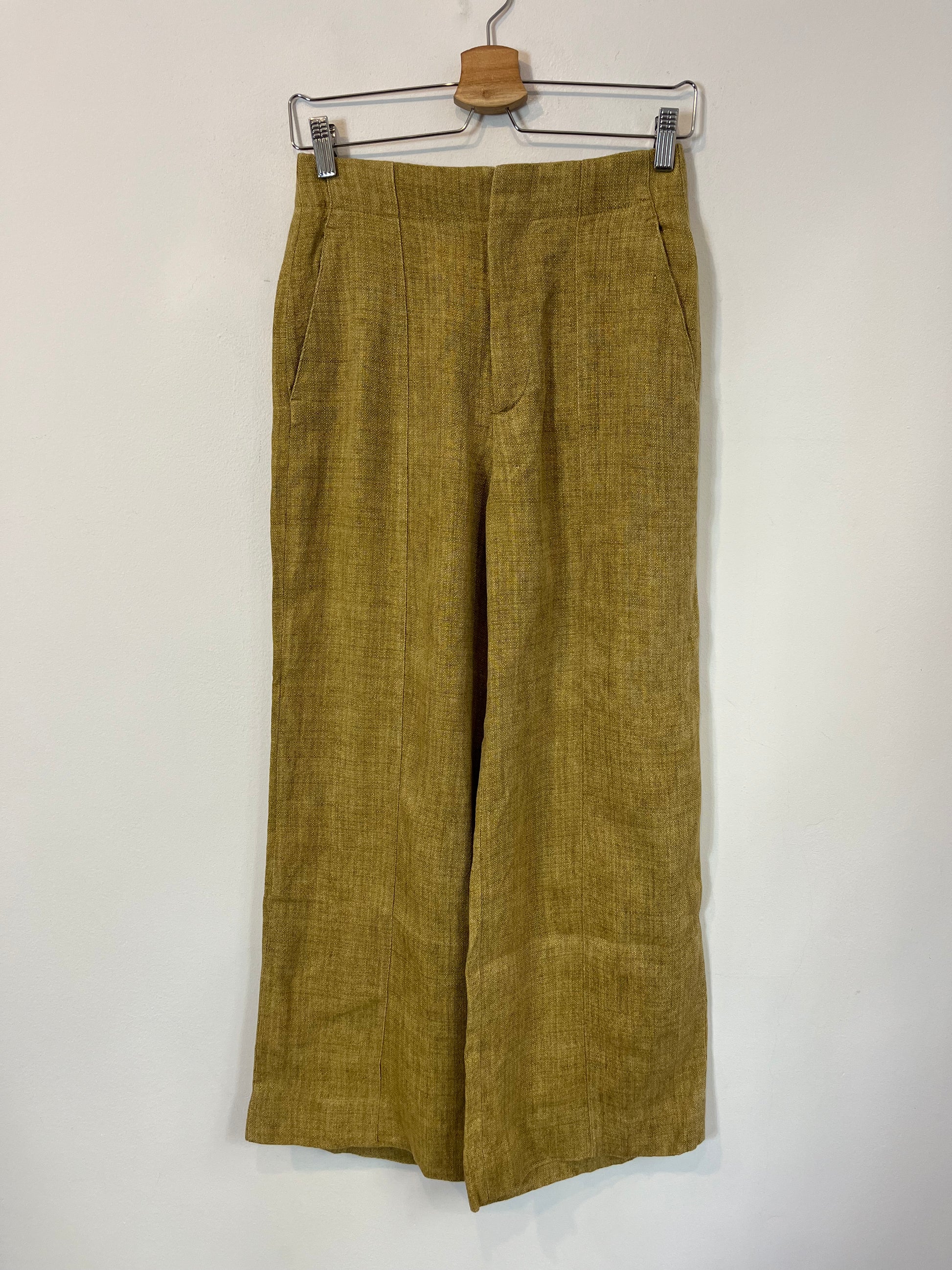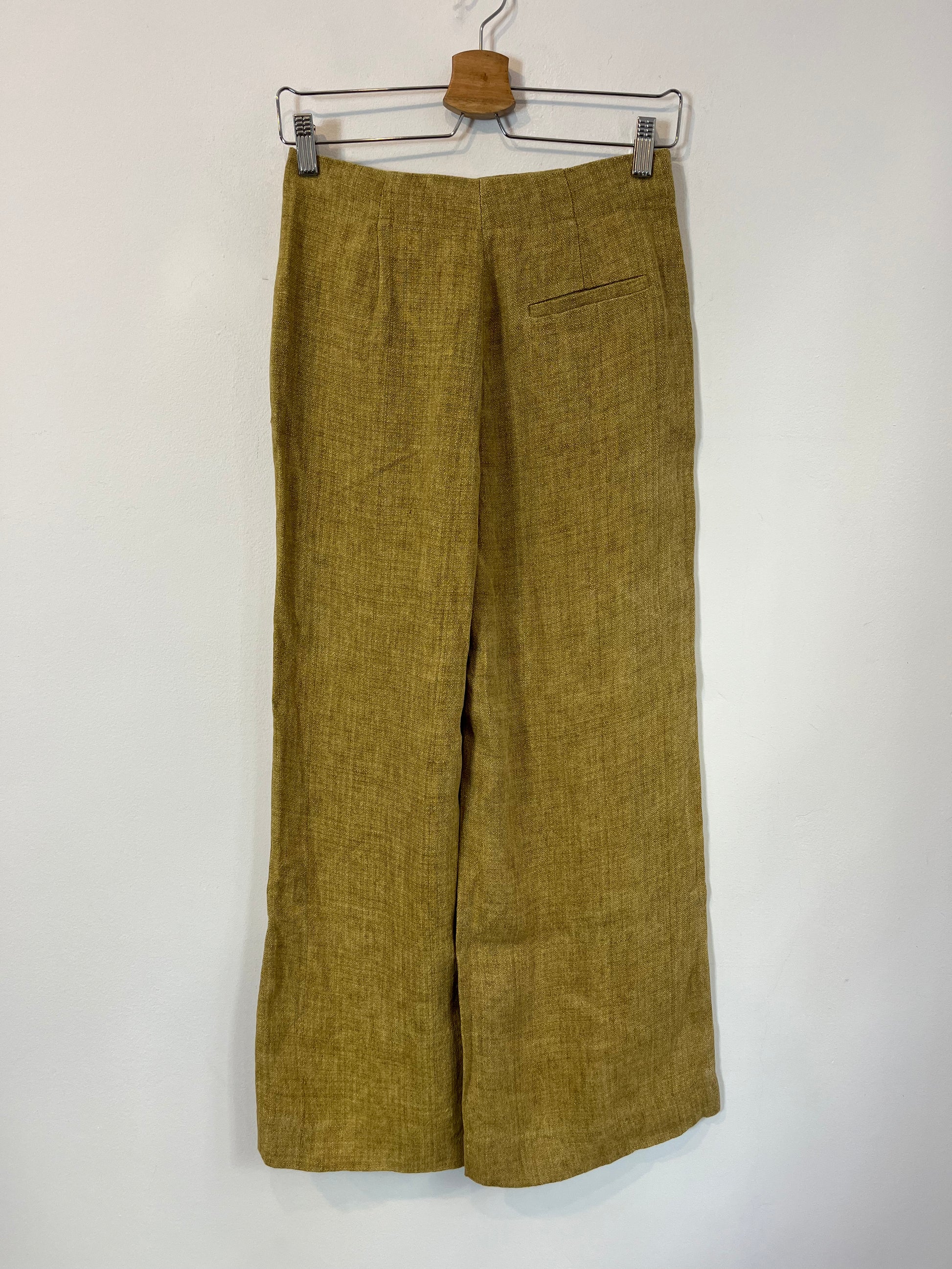 100% lino. Cintura 35 cm, largo 95 cm. No elástico. Tonos beiges/mostaza.